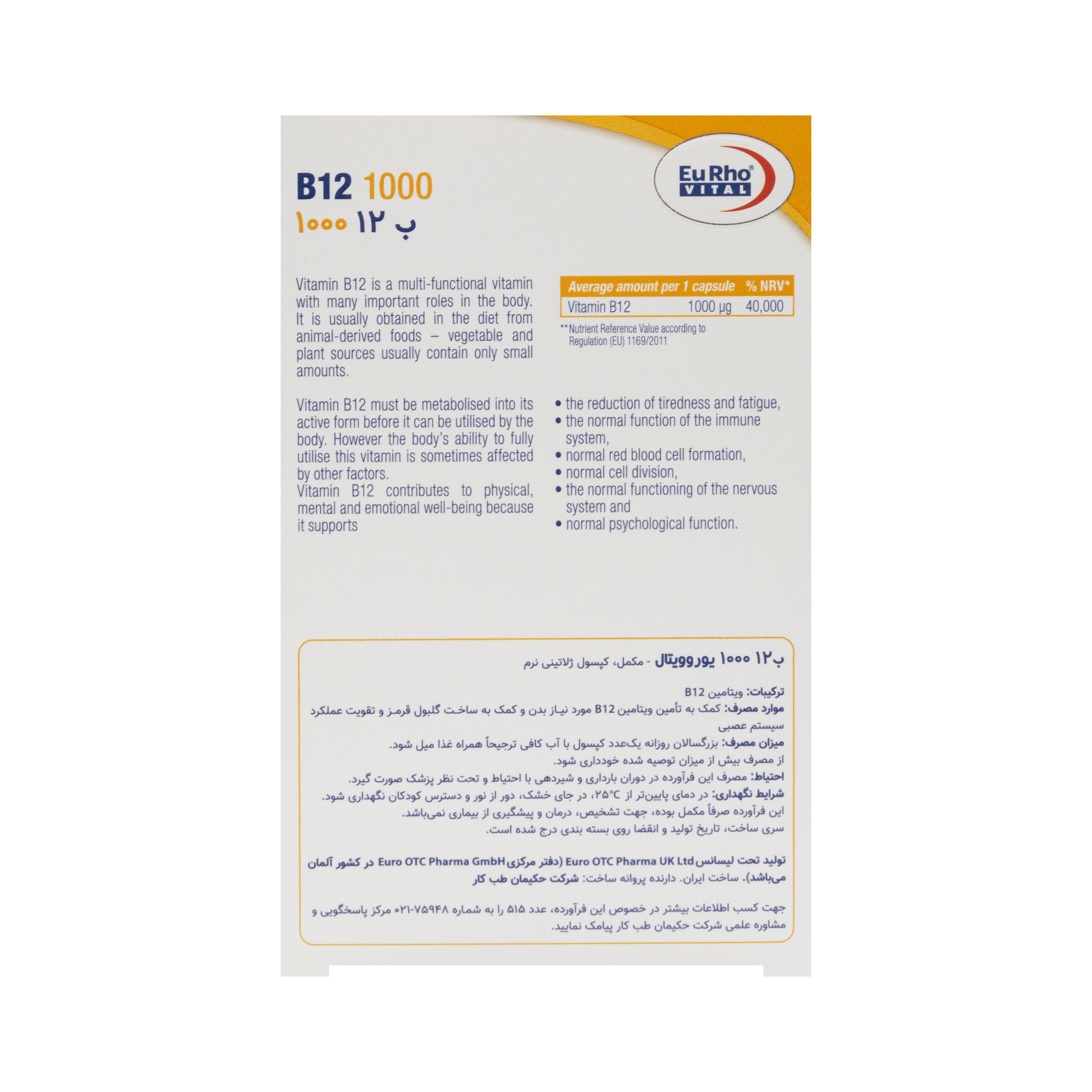 کپسول ب12 1000 میکروگرم یورو ویتال