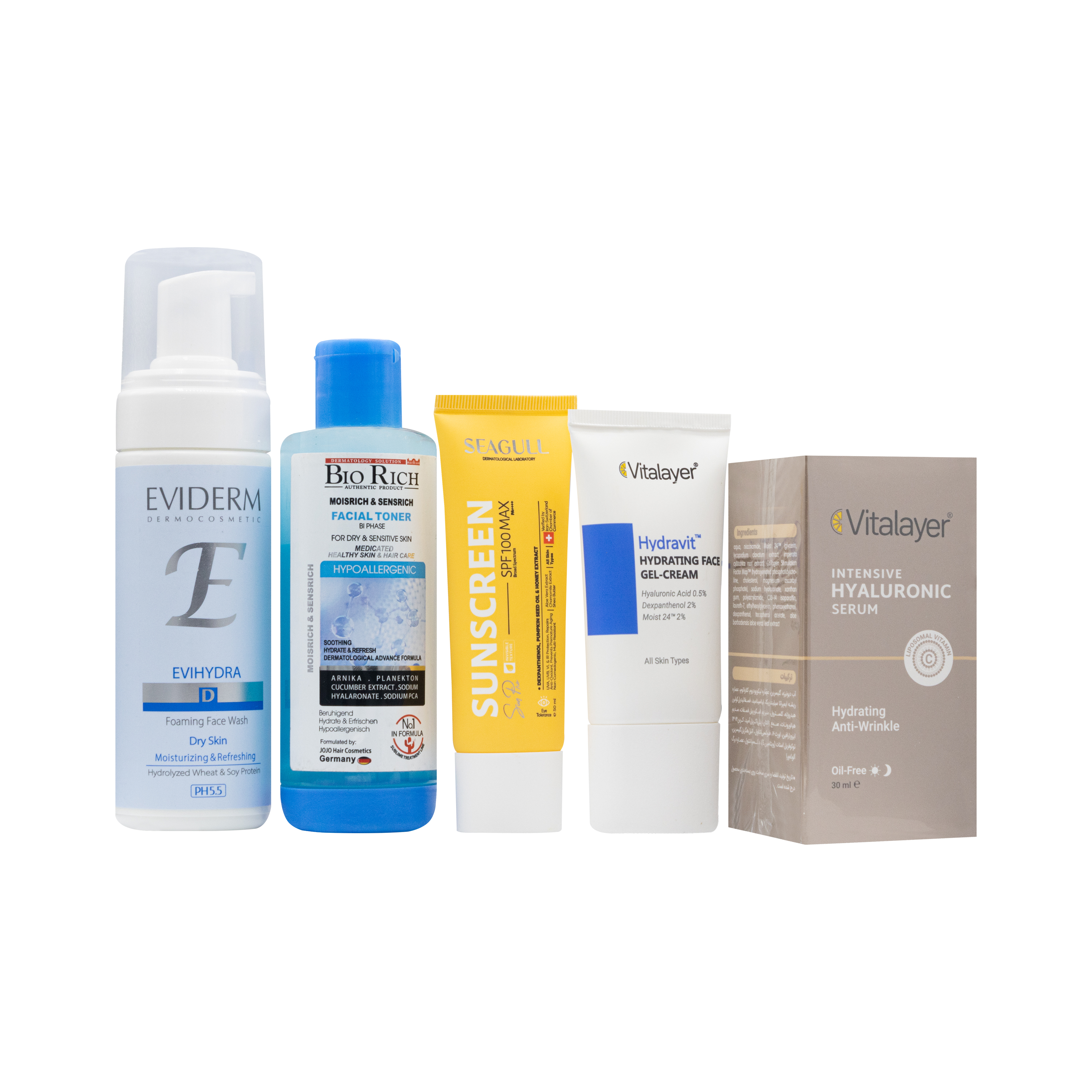 پک پوست خشک اقتصادی شامل پنج محصول موثر در این زمینه میباشد که همگی حاوی ترکیبات فوقالعاده است که به طور موثری به آبرسانی، تغذیه و ترمیم پوست خشک کمک میکنند. در ادامه شما را با هر یک از محصولات موجود در این پکیج آشنا میکنیم: