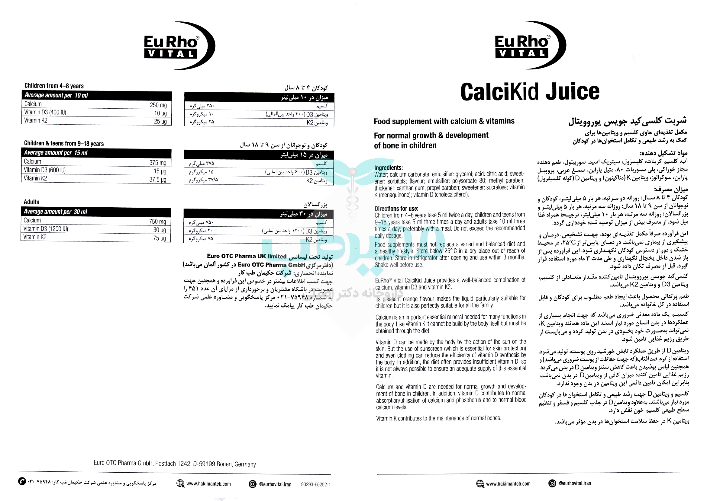 تولید تحت لیسانس Pharma K Ltd دفتر مرکزی Euro OTC Pharma GmbH در کشور آلمان