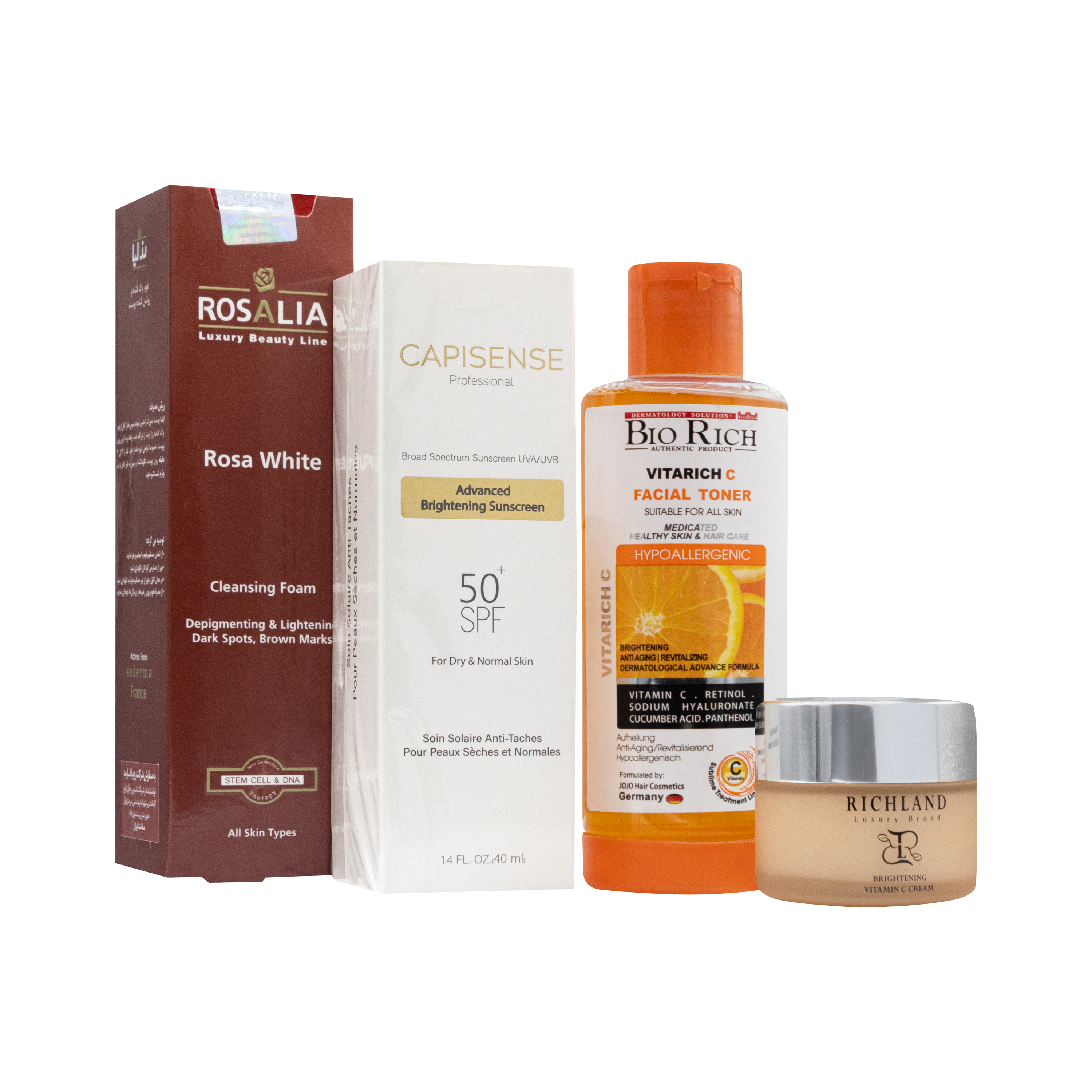 در طول روز حداکثر دو بار پوست خود را توسط فوم پاک کننده و روشن کننده پوست رزالیا شستشو دهید. سپس یک پد را آغشته به تونر ویتامین سی بایوریچ کرده و سطح پوست خود را پاک کنید (مداومت در انجام این کار منجر به تنظیم شدن ph پوست و روشن شدن بافت پوست میشود). سپس در طول روز حداقل دو بار از کرم ویتامین سی ریچلند جهت رطوبت رسانی و شادابی بافت پوست استفاده کنید. برای مراقبت از پوست در مقابل نور آفتاب هر 3-2 ساعت از ضدآفتاب روشن کننده کپیسنس استفاده کنید.