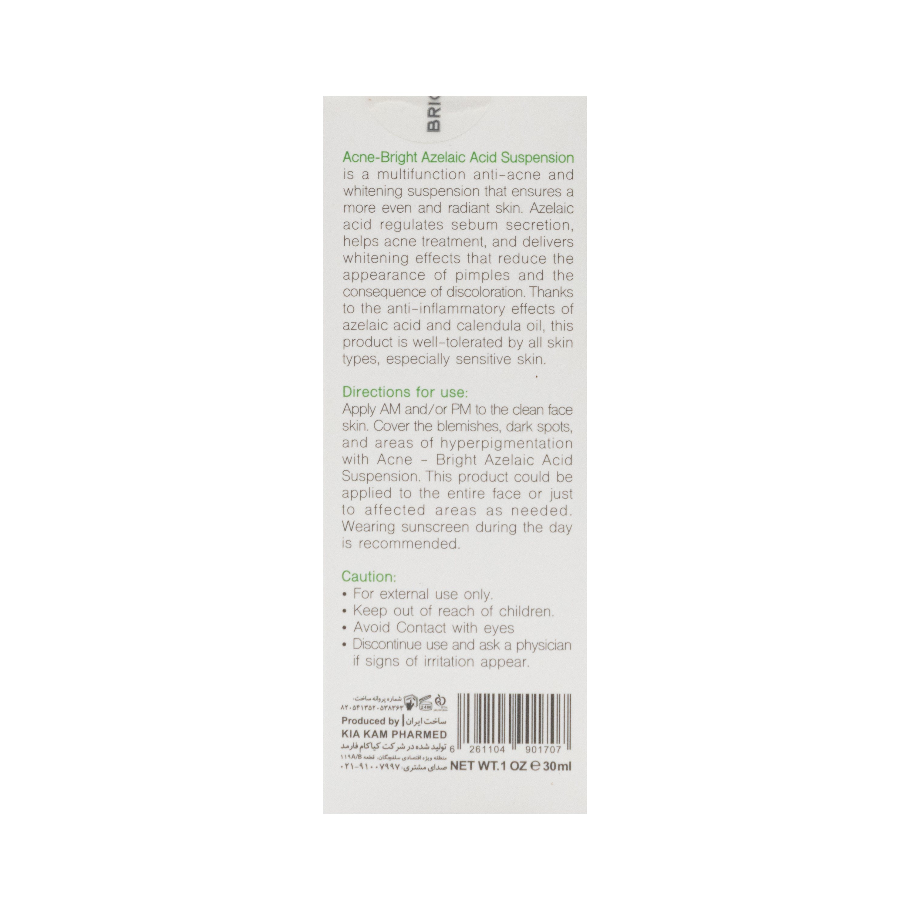 ترکیبات موثر سوسپانسیون آزلائیک اسید 10% آکنه برایت برایت مکس