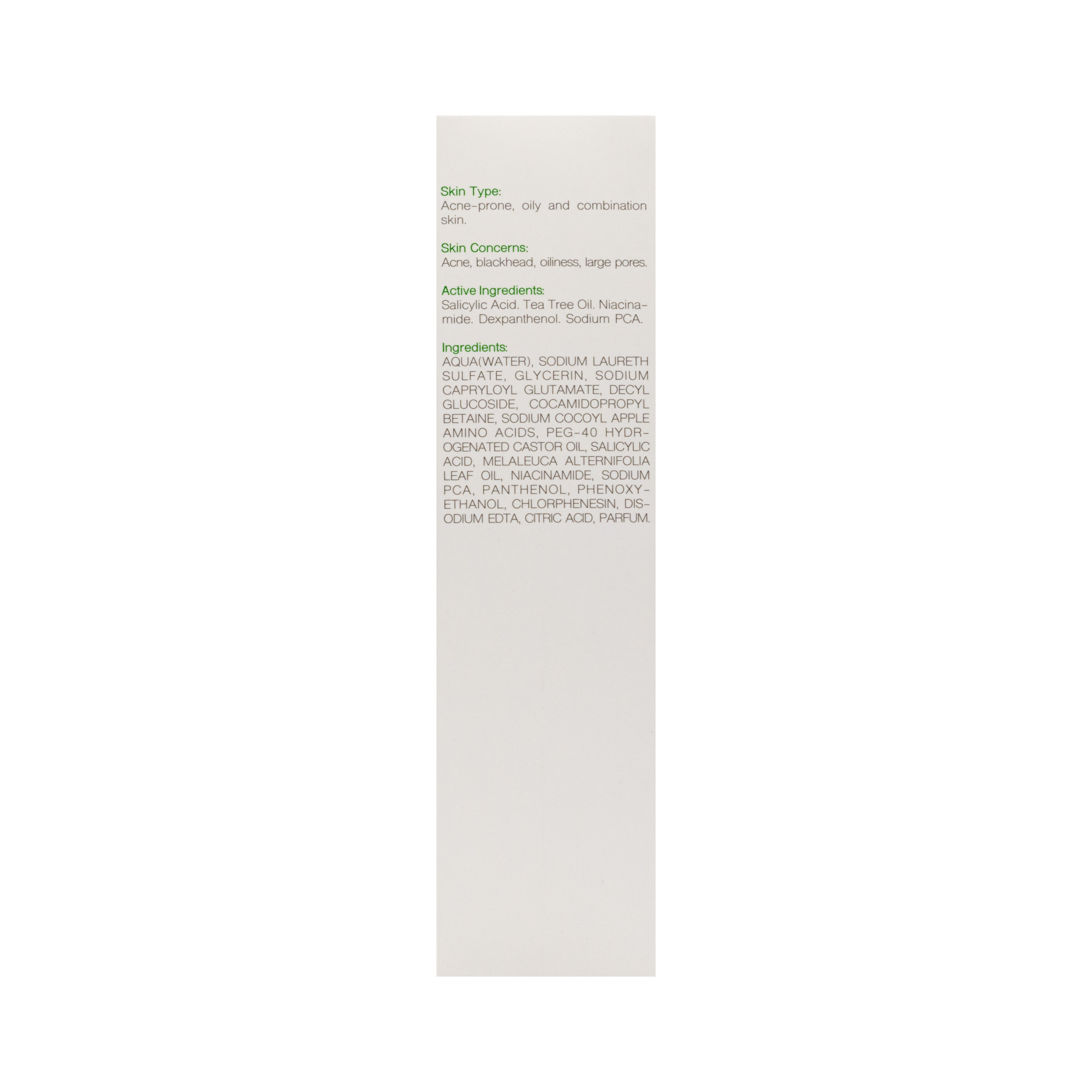 AQUA(WATER), SODIUM LAURETH SULFATE, GLYCERIN, SODIUM CAPRYLOYL GLUTAMATE, DECYL GLUCOSIDE,COCAMIDOPROPYL BETAINE, SODIUM COCOYL APPLE AMINO ACIDS, PEG-40 HYDR- OGENATED CASTOR OIL, SALICYLIC ACID, MELALEUCA ALTERNIFOLIA LEAF OIL, NIACINAMIDE, SODIUM PCA, PANTHENOL, PHENOXY- ETHANOL, CHLORPHENESIN, DIS- ODIUM EDTA, CITRIC ACID, PARFUM