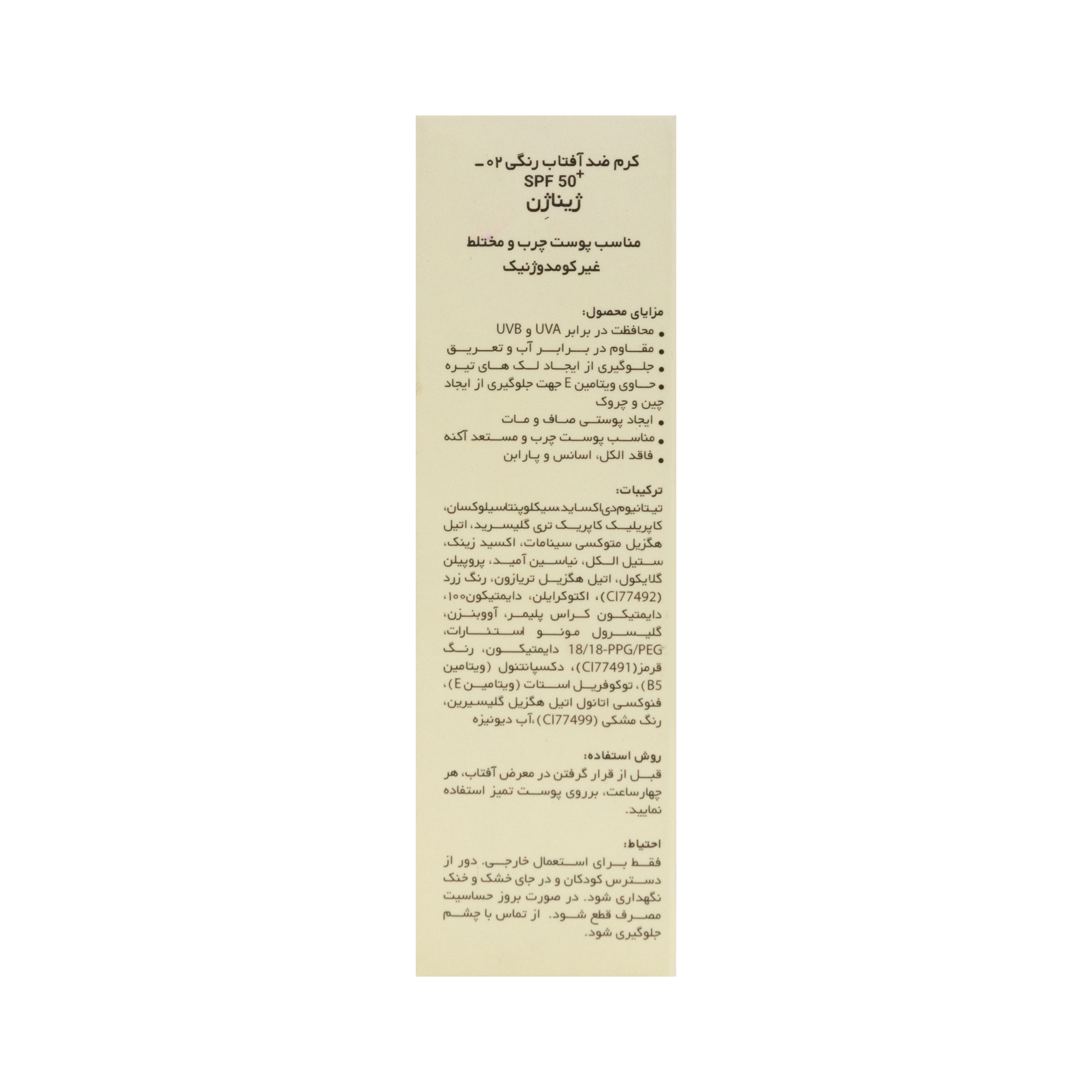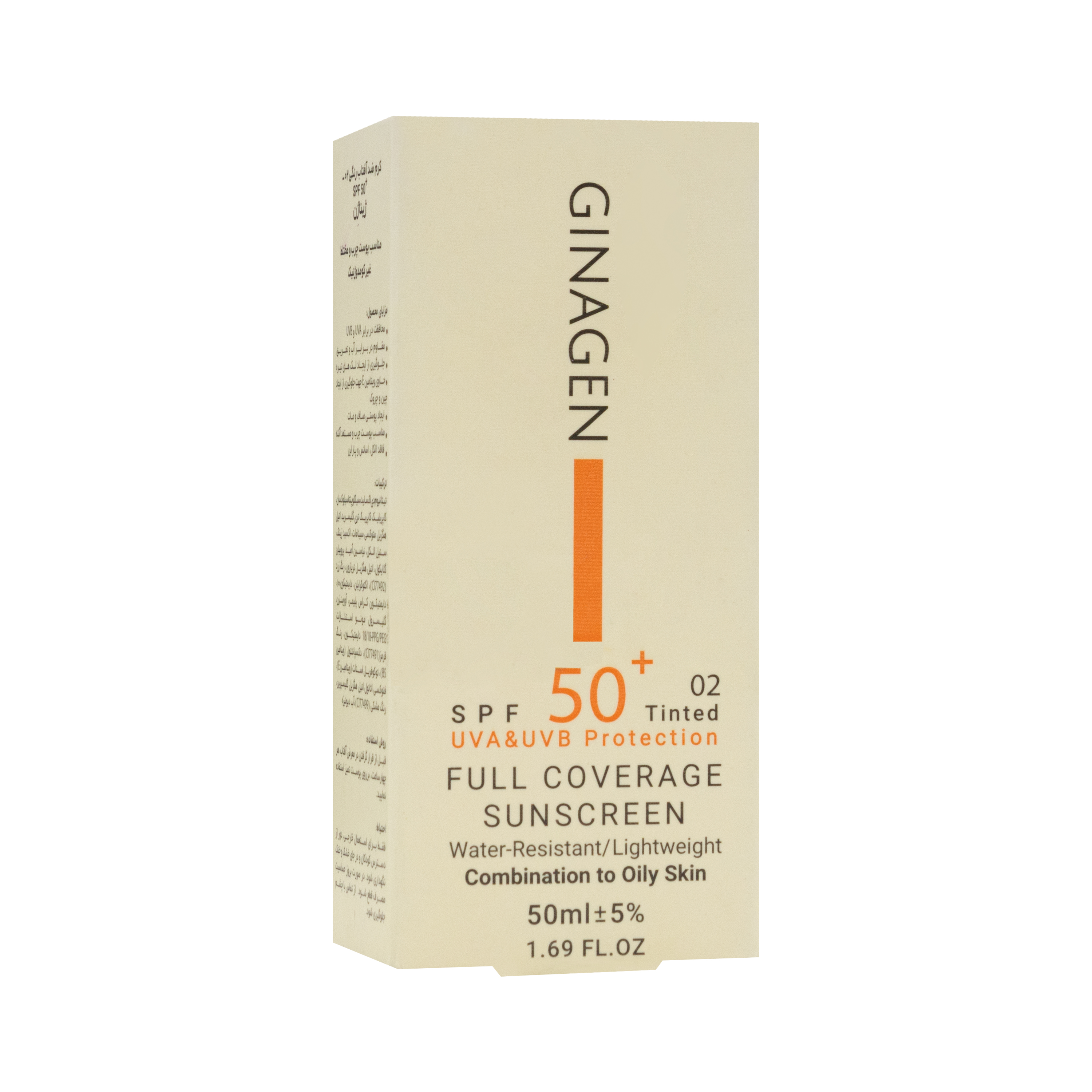 کرم ضد آفتاب رنگی SPF50 شماره 02 پوست چرب و مختلط ژیناژن