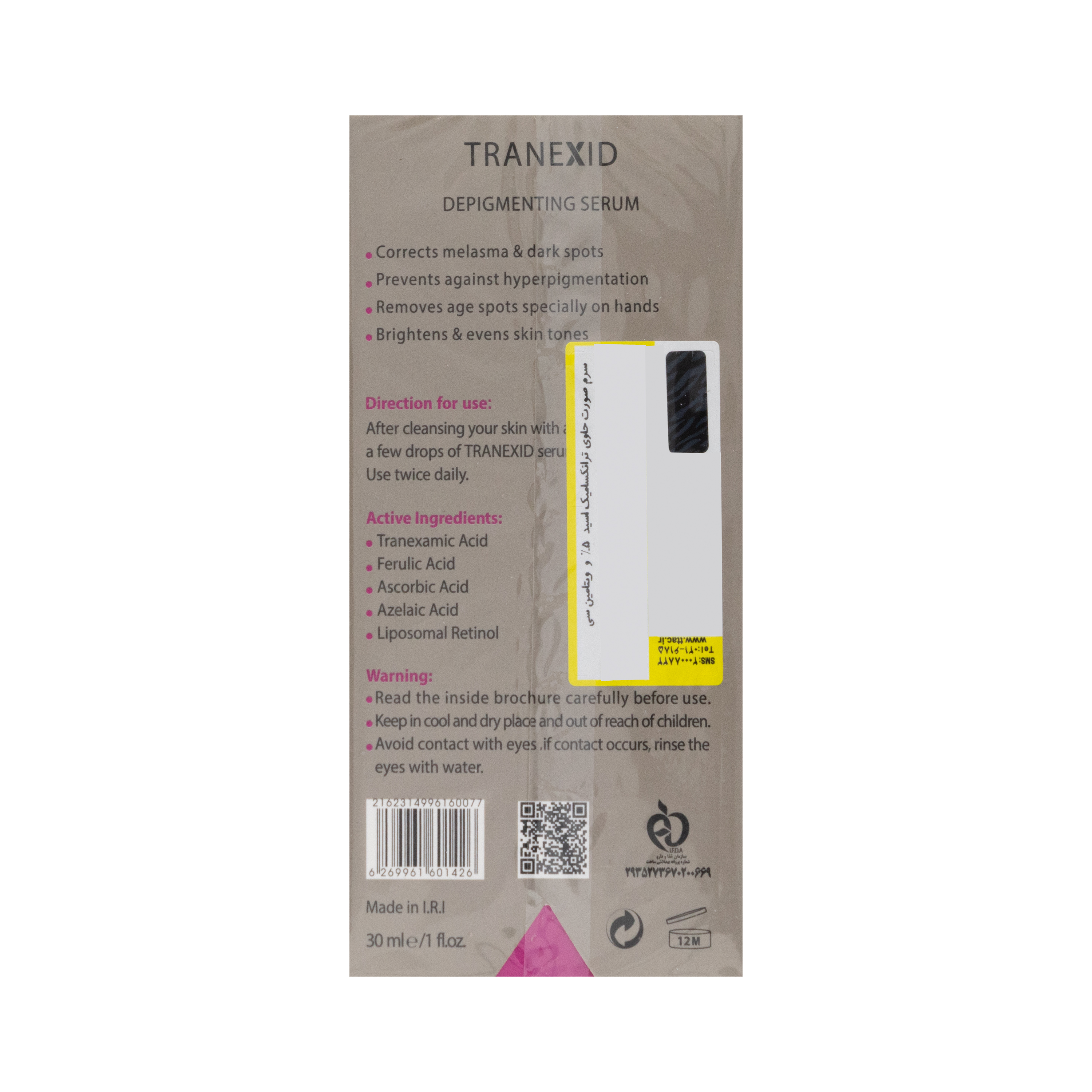 - اسید ترانگزامیک، آزلئیک اسید، آربوتین، فرولیک اسید، ویتامین سی (به فرم لیپوزمال)، نیاسینامید، رتینول