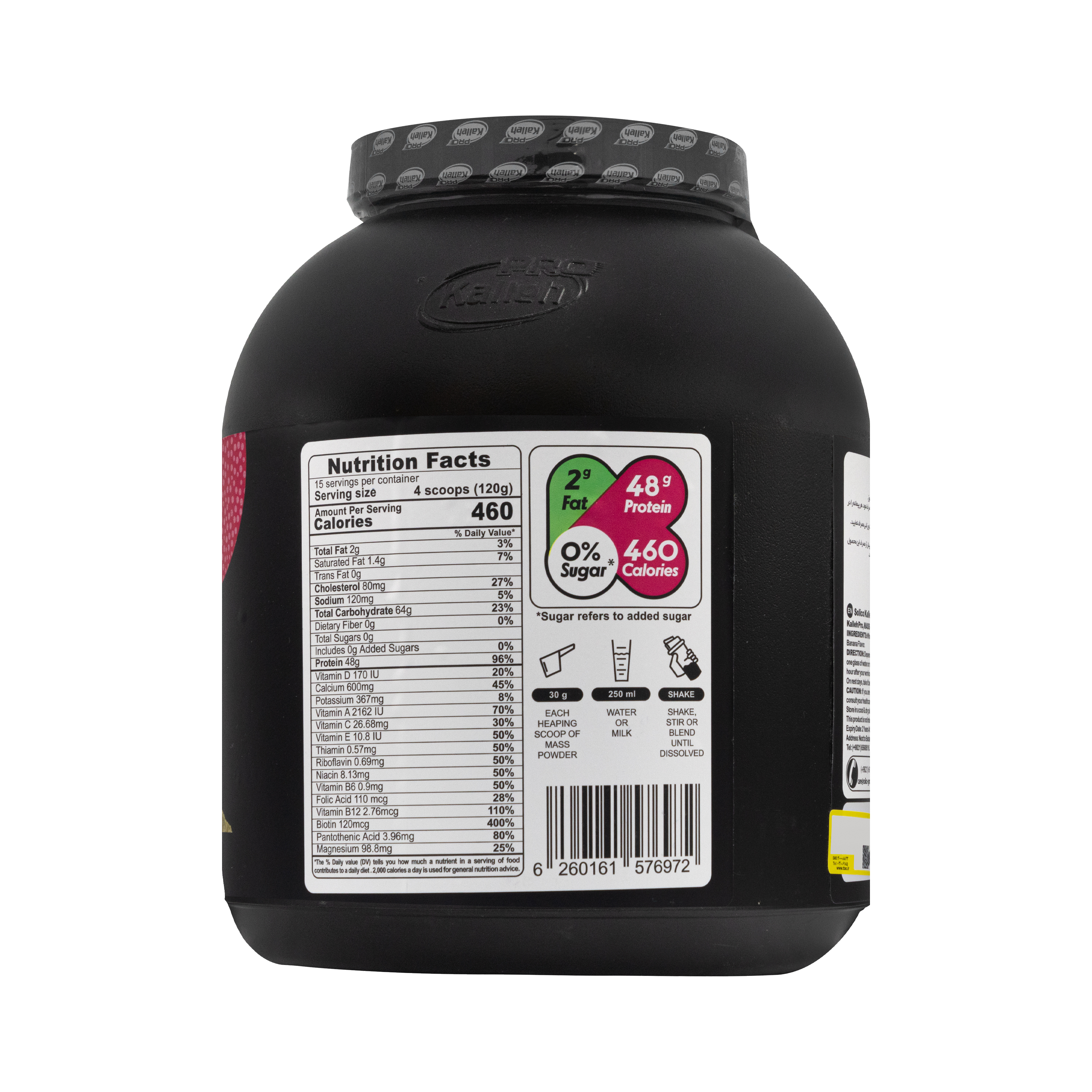 پروتئین وی کنسانتره، مالتو دکسترین، مجموعه ویتامین ها و مینرال، کلسیم سیترات، پودر کاکائو، طعم دهنده مجاز
