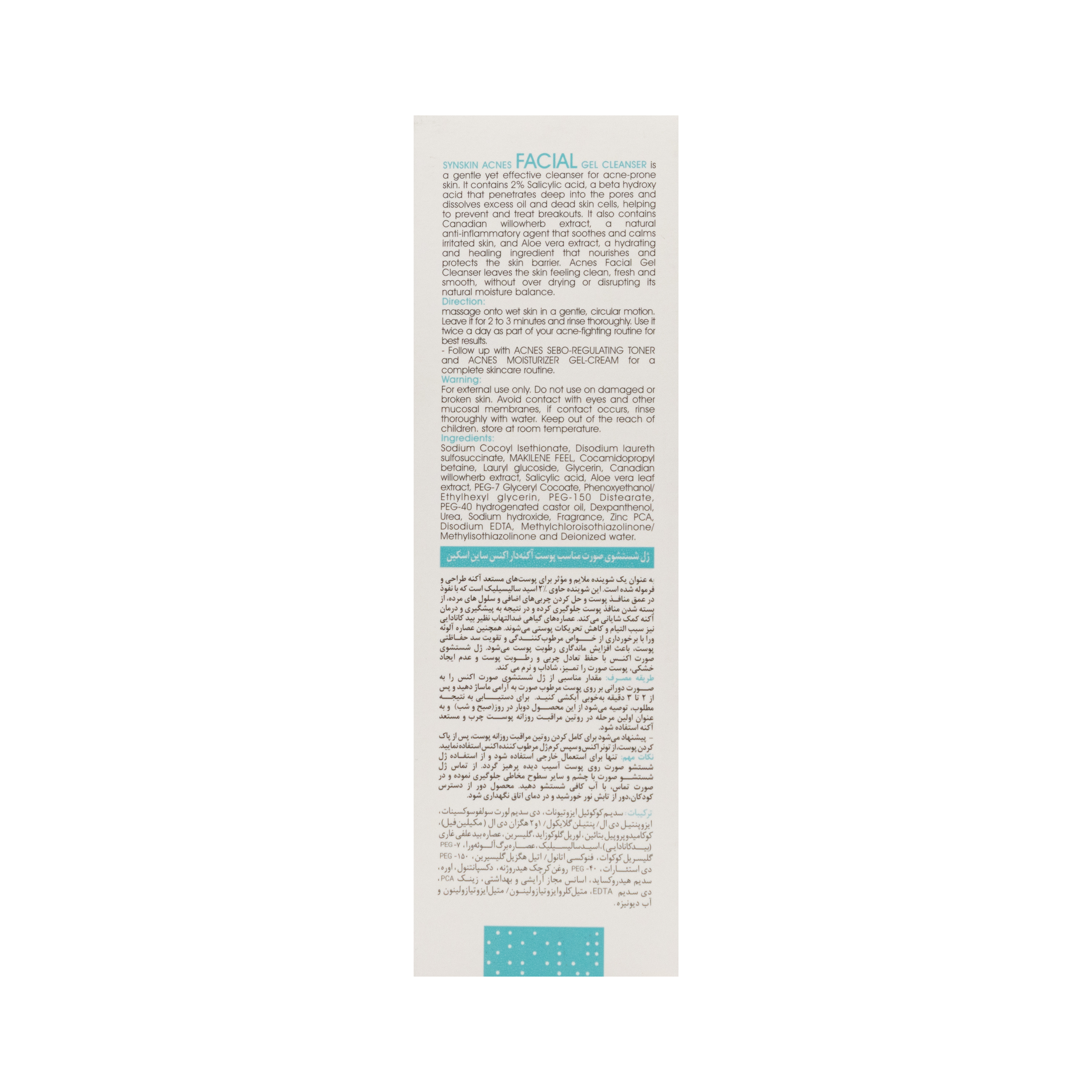 - حاوی 2% اسید سالیسیک، عصاره های گیاهی بید کانادایی و برگ آلوئه ورا