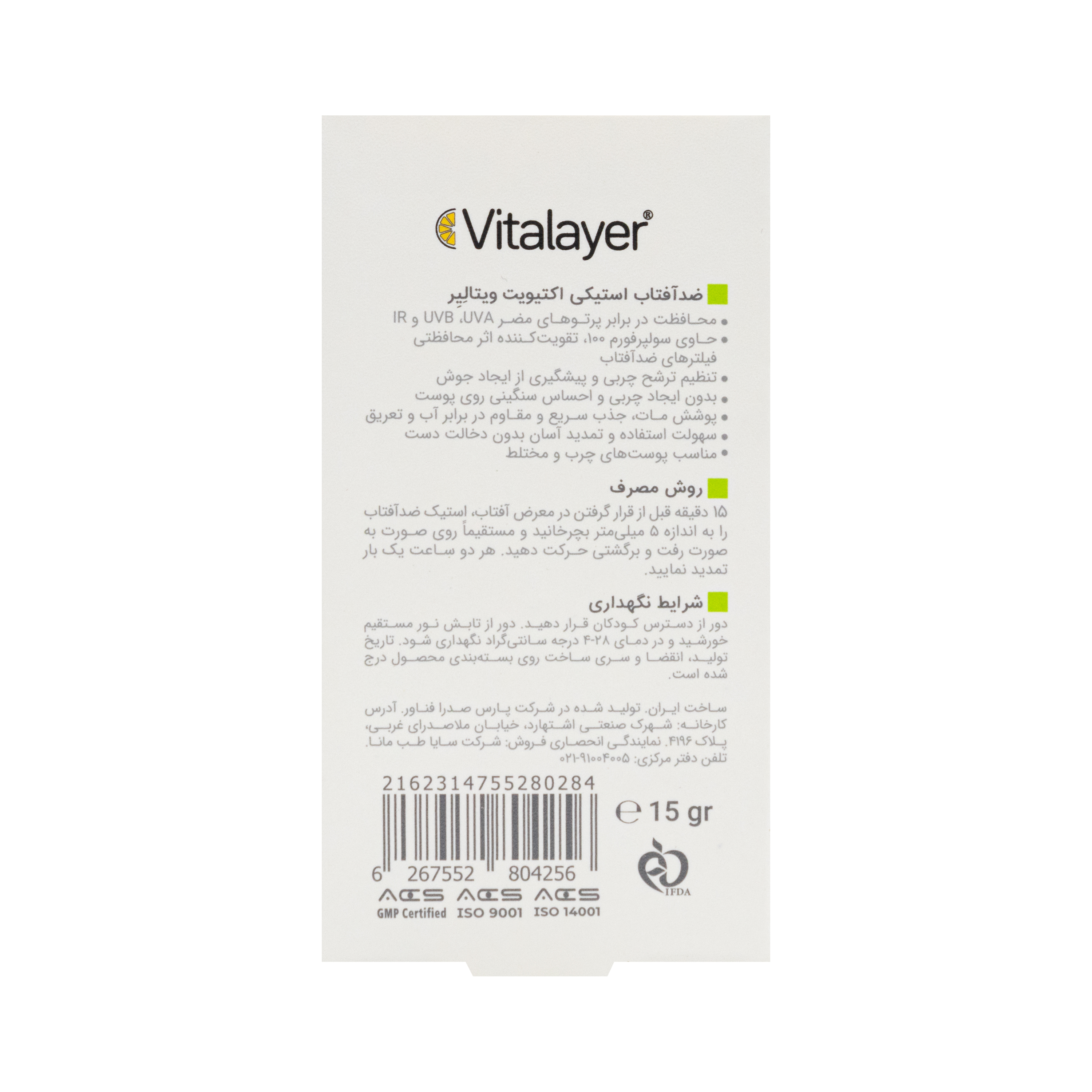 ضد آفتاب استیکی SPF50 اکتی ویت پوست چرب و مختلط ویتالیر