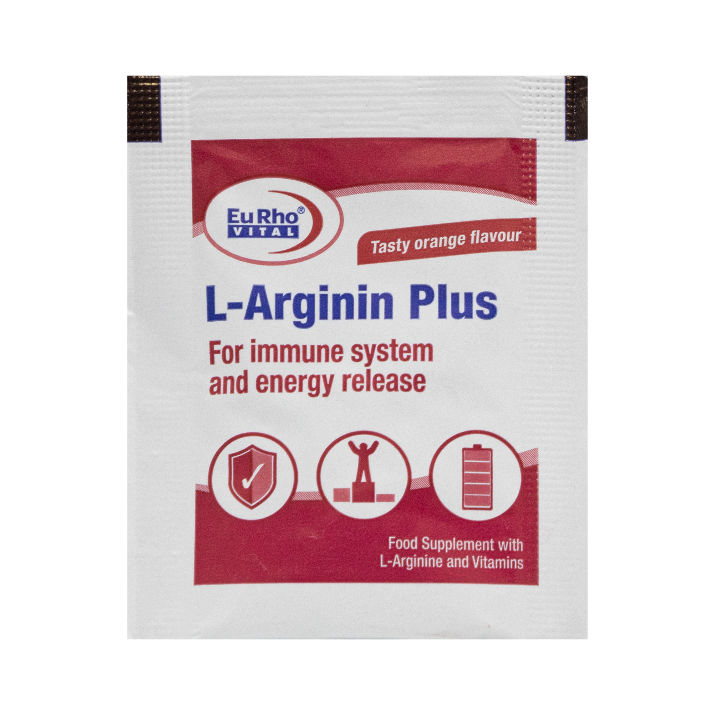 - آرژینین آمینو اسیدی است که نقشهای مهمی بر عهده دارد. این آمینو اسید در منابع غذایی پروتئینی وجود دارد و در بدن نیز سنتز میشود. در شرایطی که نیاز به آرژینین افزایش مییابد، مصرف مکملهای غذایی حاوی آن توصیه میشود. ساشه ال-آرژینین پلاس یوروویتال حاوی 1000 میلیگرم ال-آرژینین بههمراه فولیک اسید و ویتامینهای C، B12، B6 و D است که به افزایش سطح انرژی، تقویت سیستم ایمنی، ارتقای قوای جنسی در آقایان و بهبود عملکرد ورزشی کمک میکند.