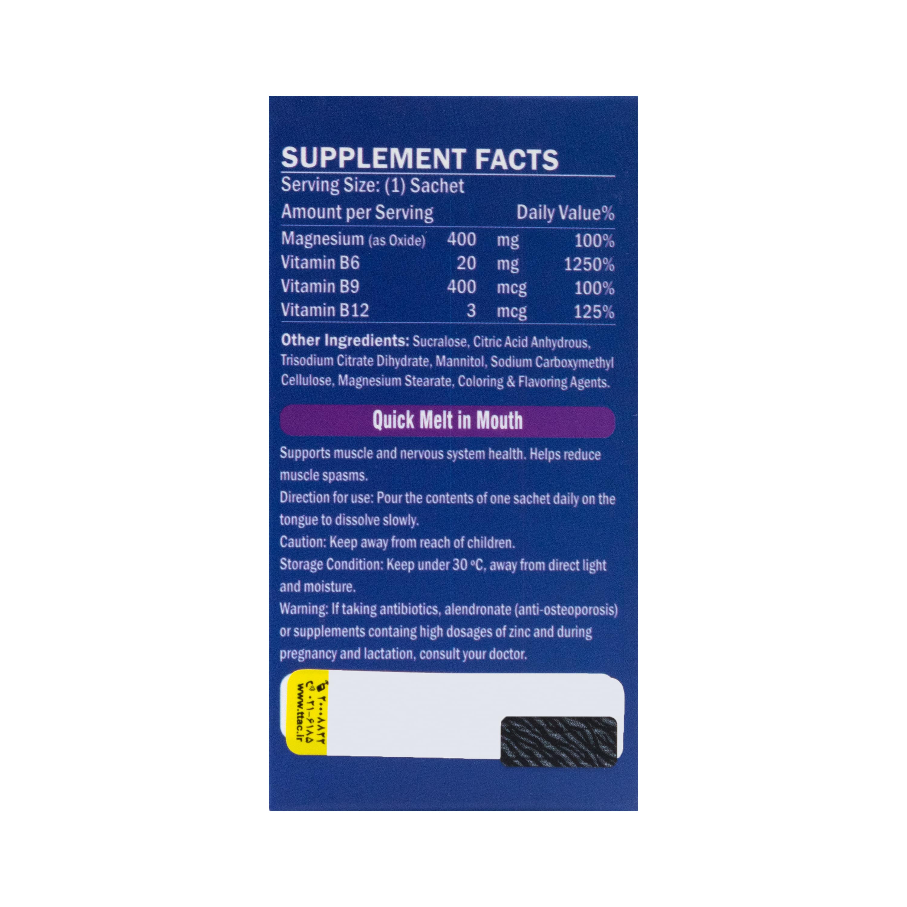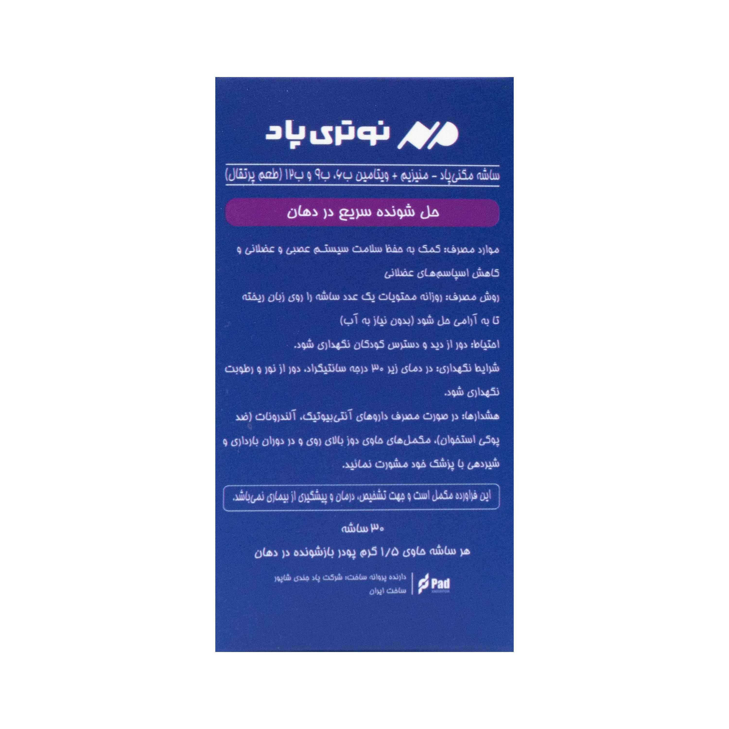 ساشه مگنی پاد منیزیم ب6 ب9 ب12 نوتری پاد