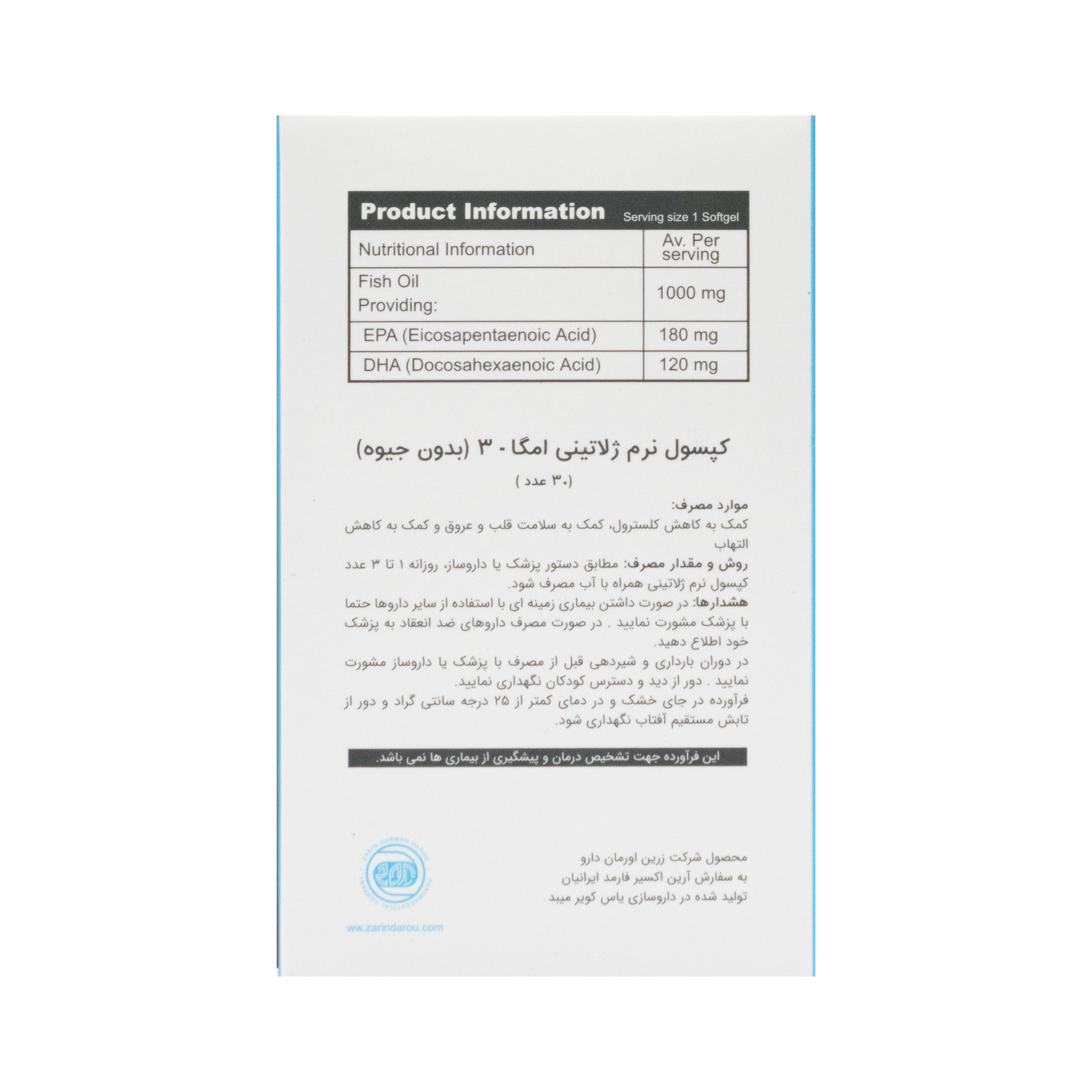 حاوی 180 میلیگرم EPA و 120 میلیگرم DHA