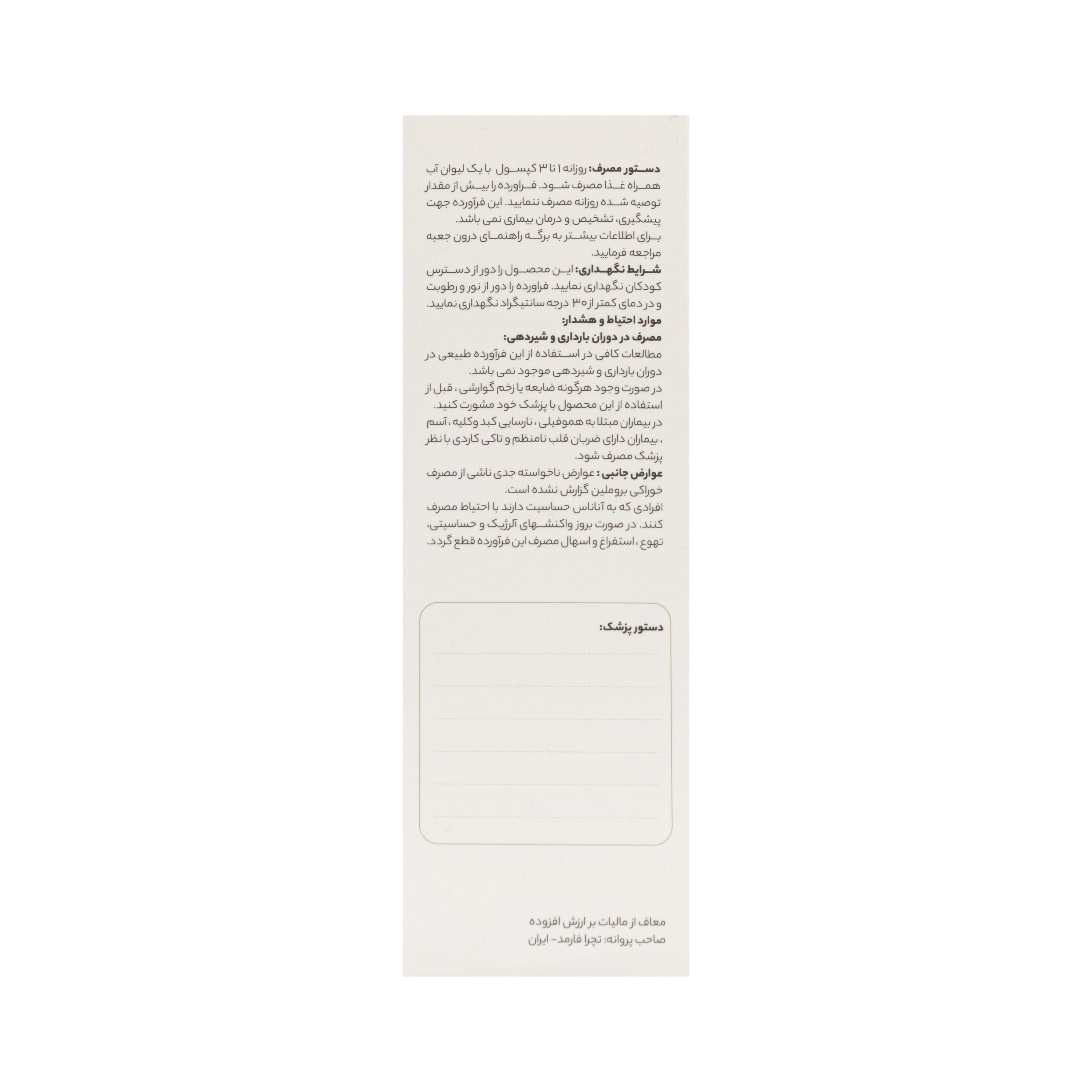 - این فرآورده جهت پیشگیری، تشخیص و درمان بیماری نمی باشد.
