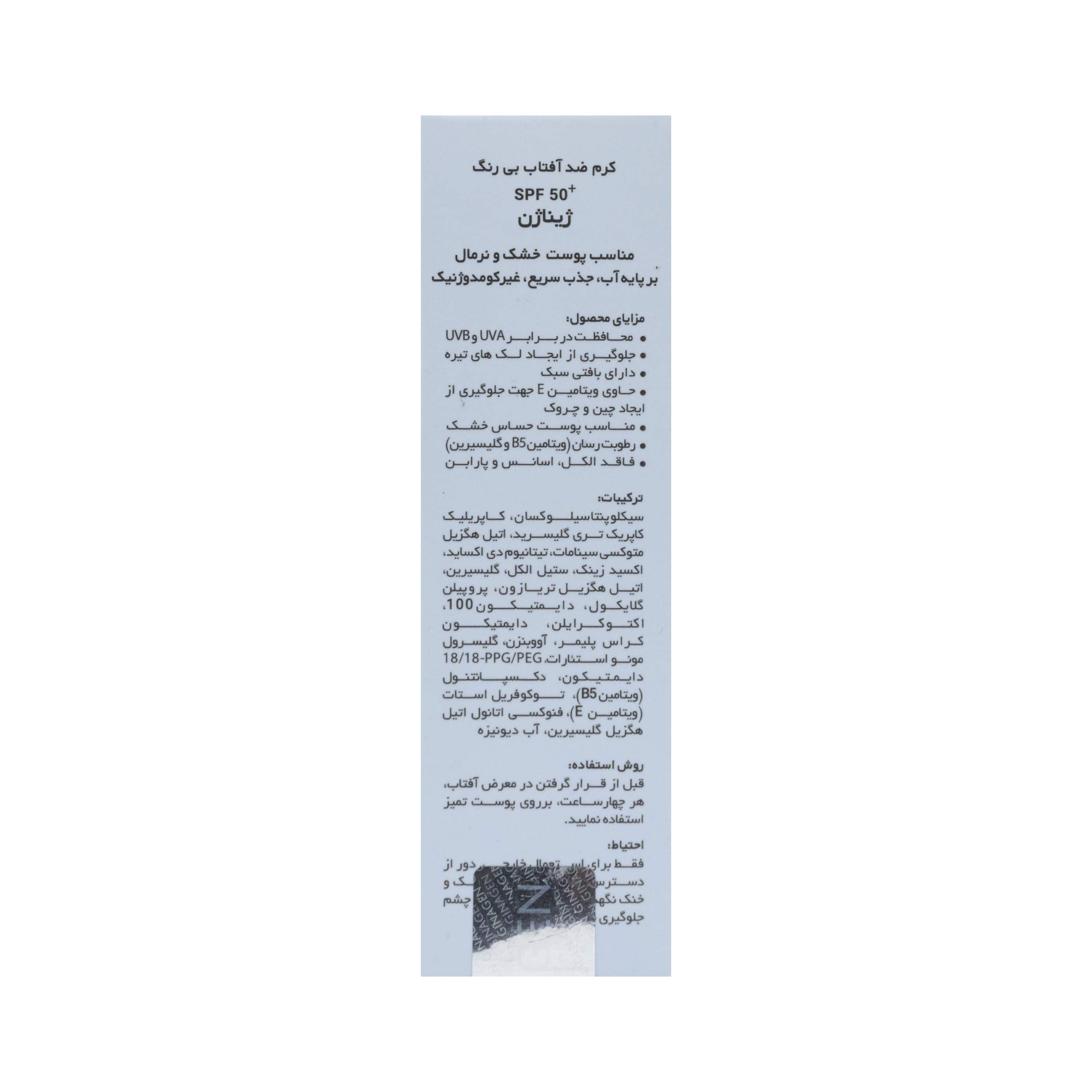 کرم ضد آفتاب بی رنگ SPF50 پوست خشک و نرمال ژیناژن