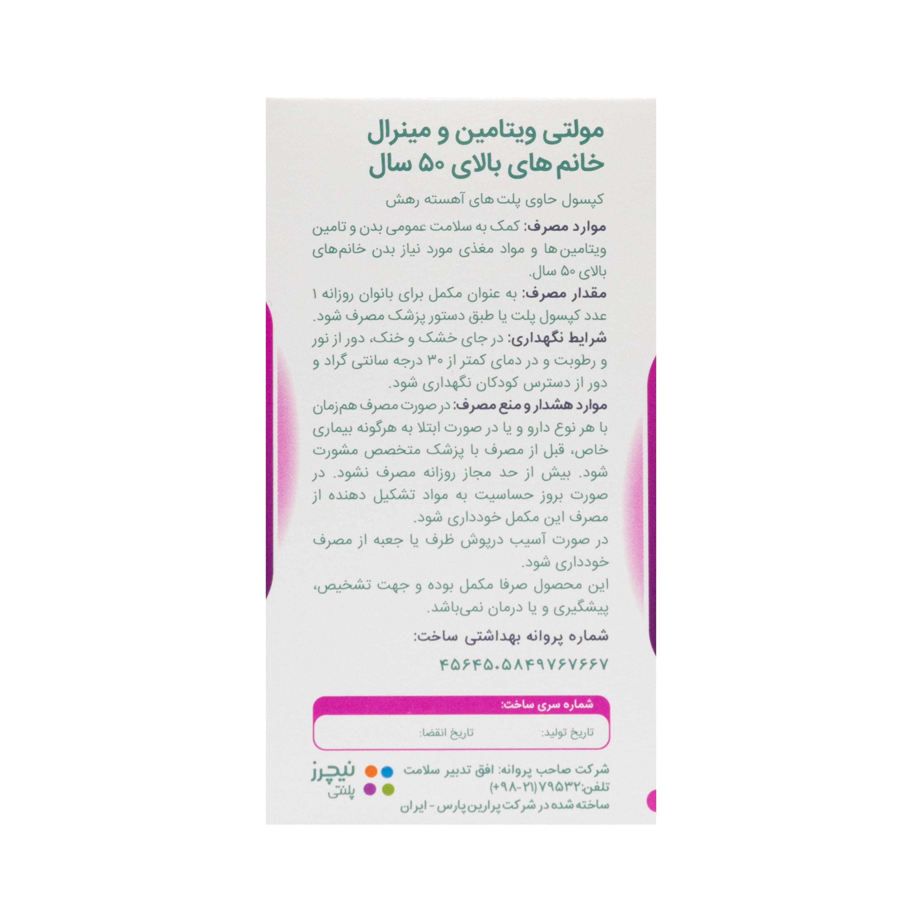 کپسول مولتی ویتامین مینرال بانوان بالای 50 سال 60 عددی نیچرز پلنتی