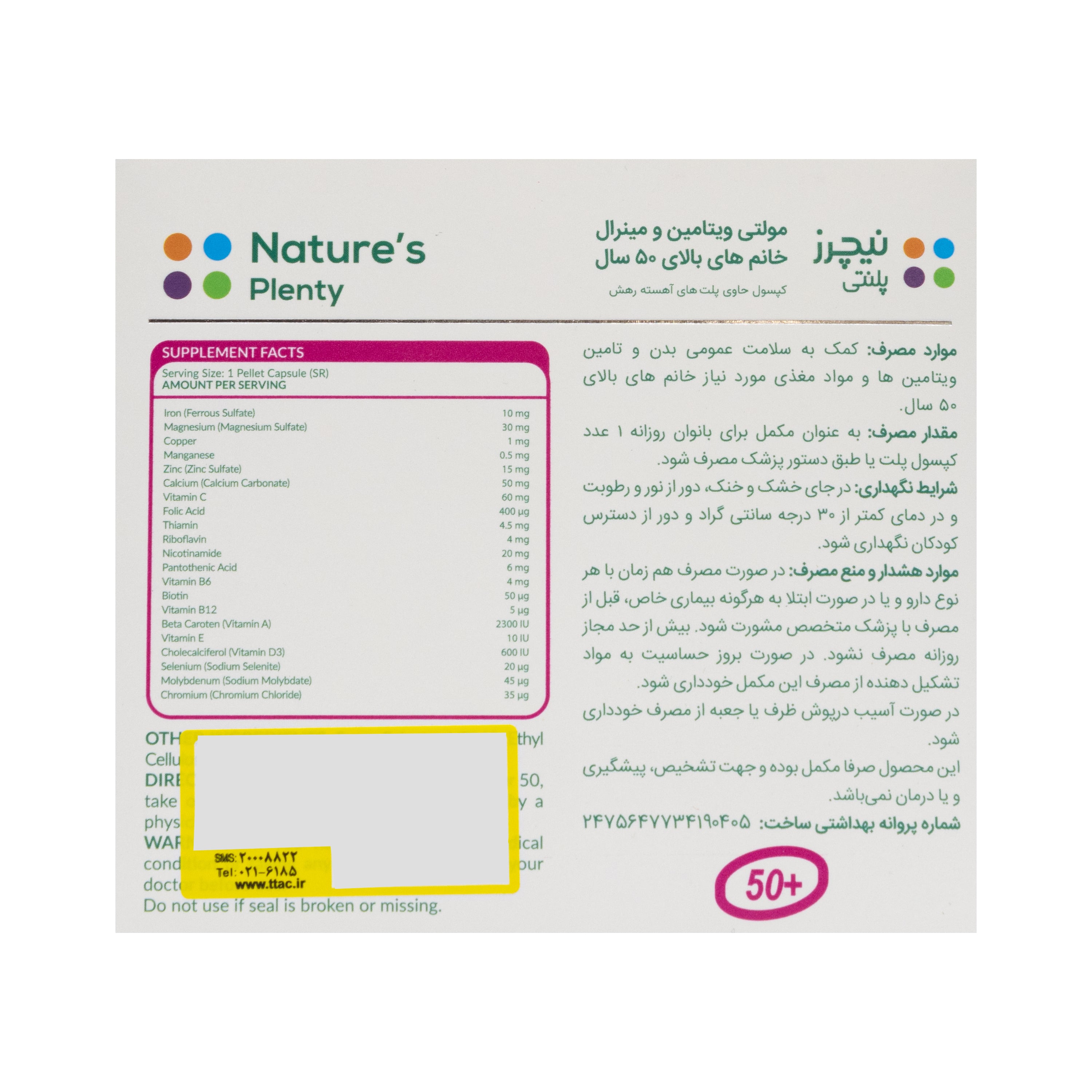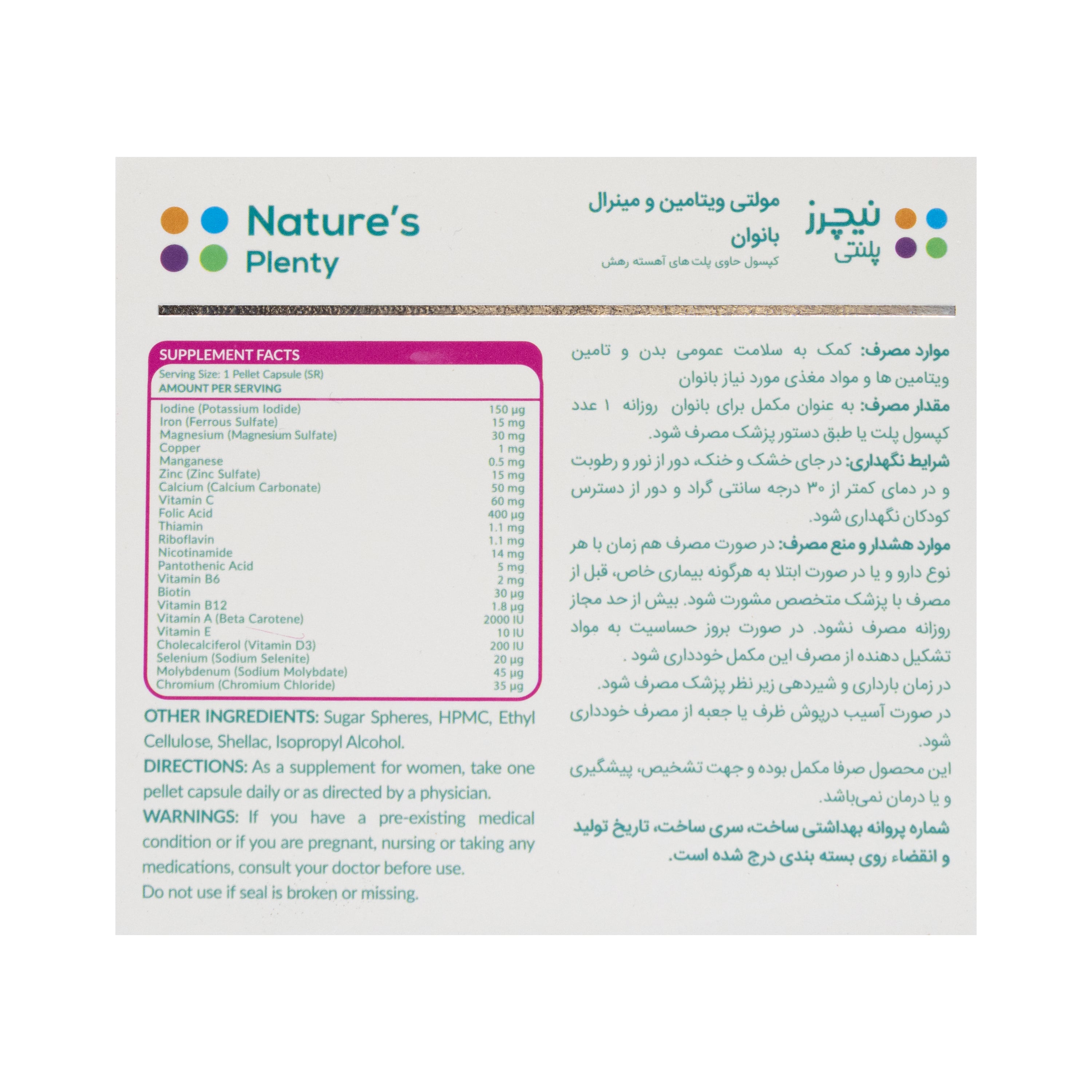 کپسول مولتی ویتامین مینرال خانم های بالای 50 سال 30 عددی نیچرز پلنتی