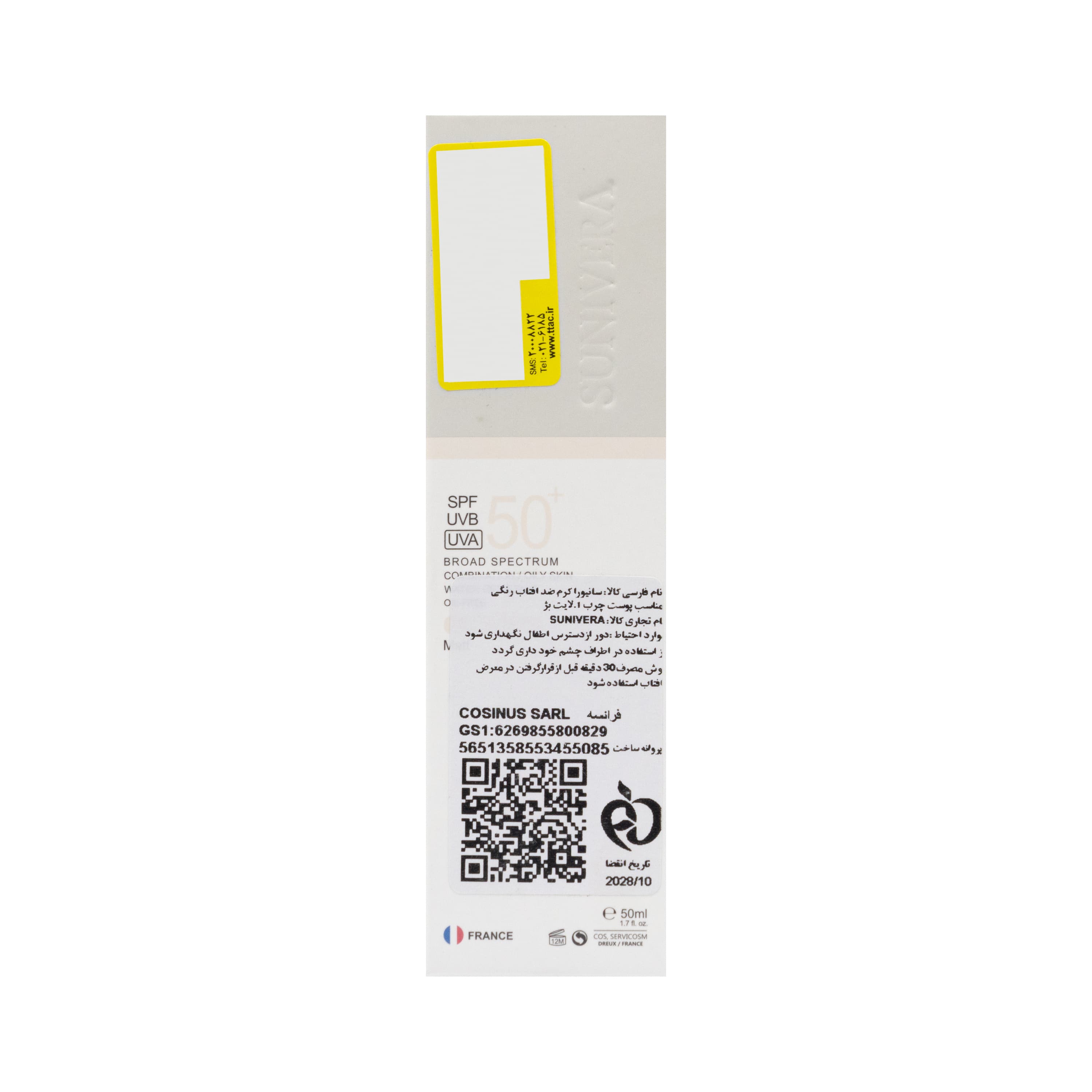 کرم ضدآفتاب رنگی SPF50 بژ روشن شماره 1 پوست چرب سانیورا