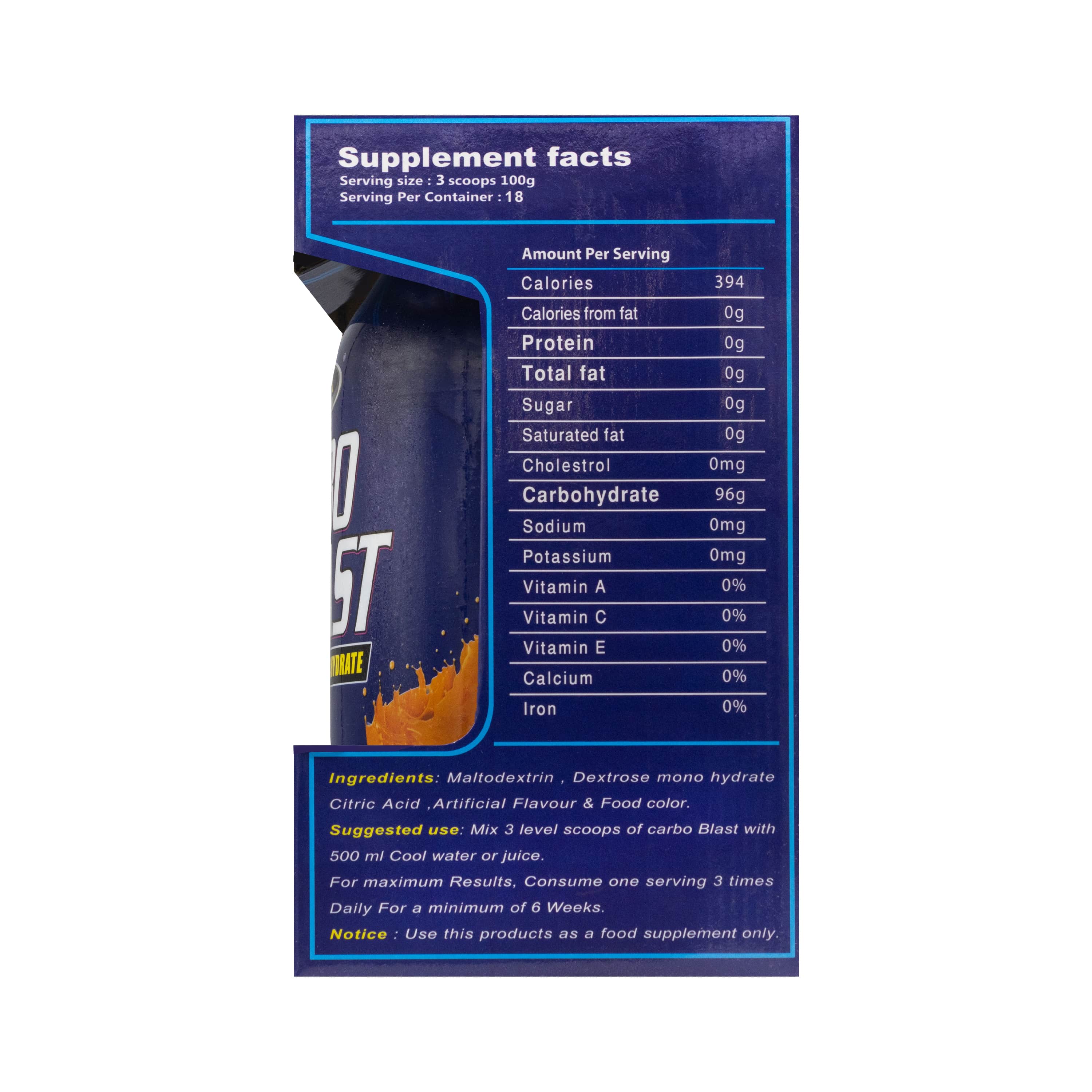 | Serving size: 3 scoops 100g Serving Per Container: 18 |