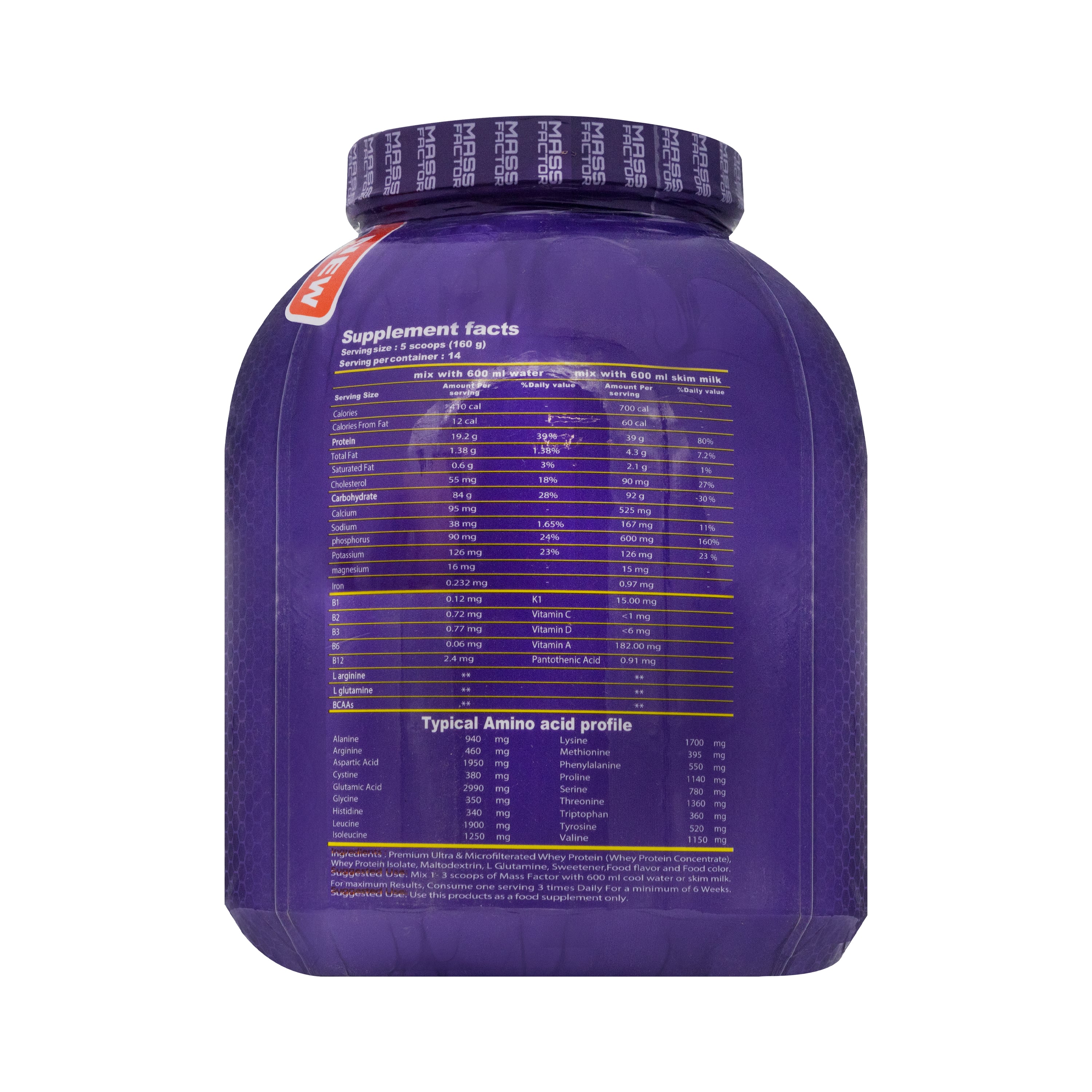 - یک فرمول قدرتمند جهت افزایش وزن و حجم دهی، حتی برای کسانیکه به سختی تغییر وزن می دهند، طراحی شده است. این محصول به بازیابی عضلات پس از تمرین های سخت کمک می کند.