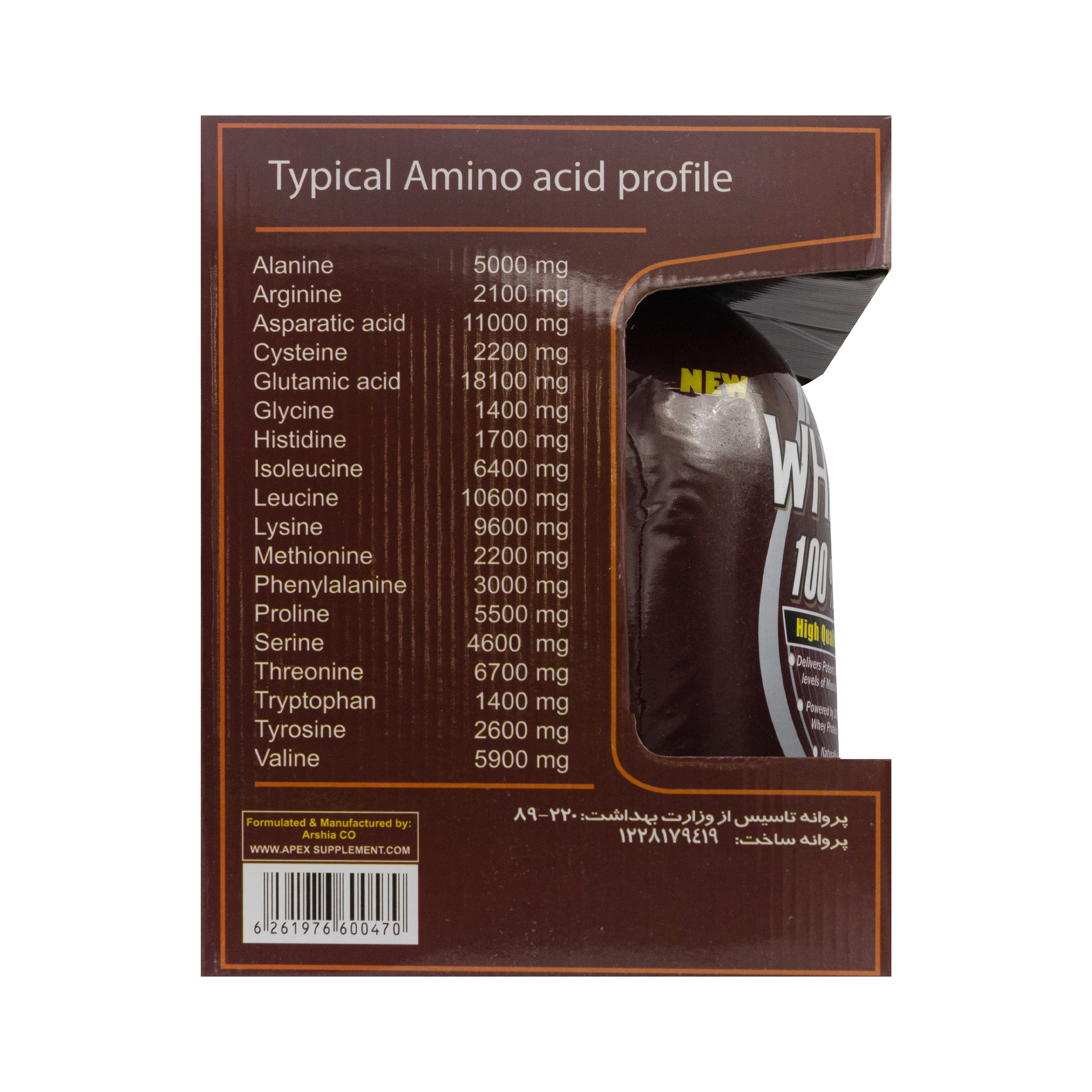 حاوی پروتئین وی کنستانتره و مقادیر بالایی از آمینو اسیدهای ضروری و شاخه دار