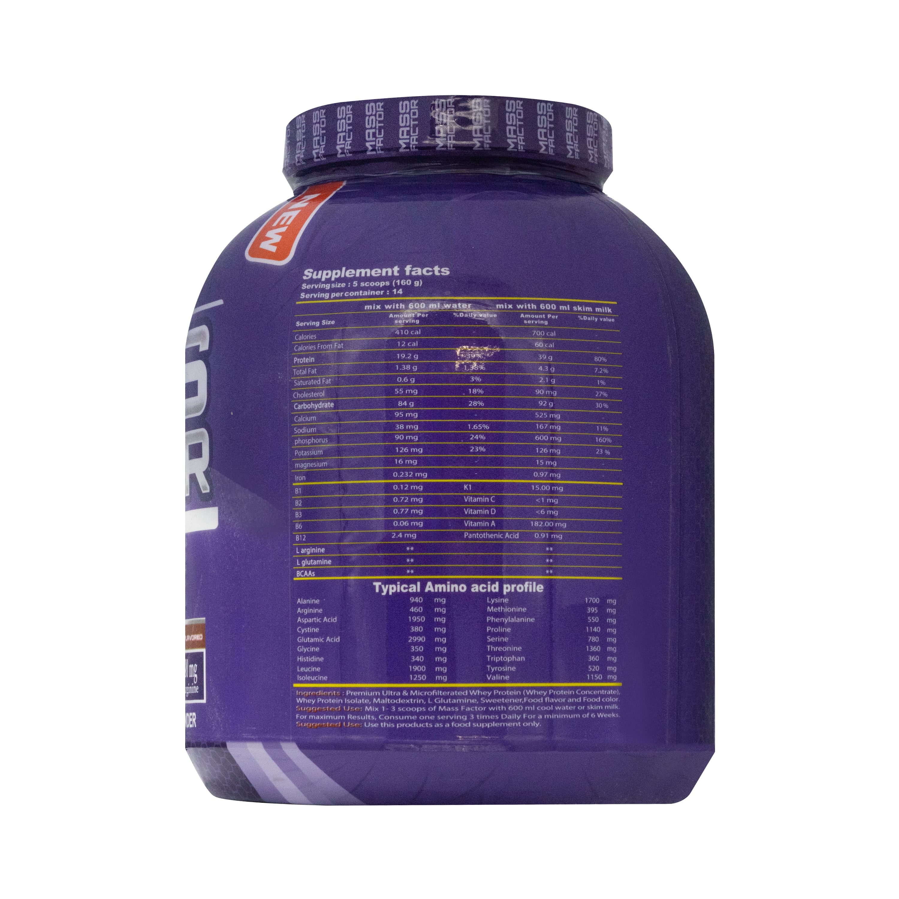 - یک فرمول قدرتمند جهت افزایش وزن و حجم دهی، حتی برای کسانیکه به سختی تغییر وزن می دهند، طراحی شده است. این محصول به بازیابی عضلات پس از تمرین های سخت کمک می کند.