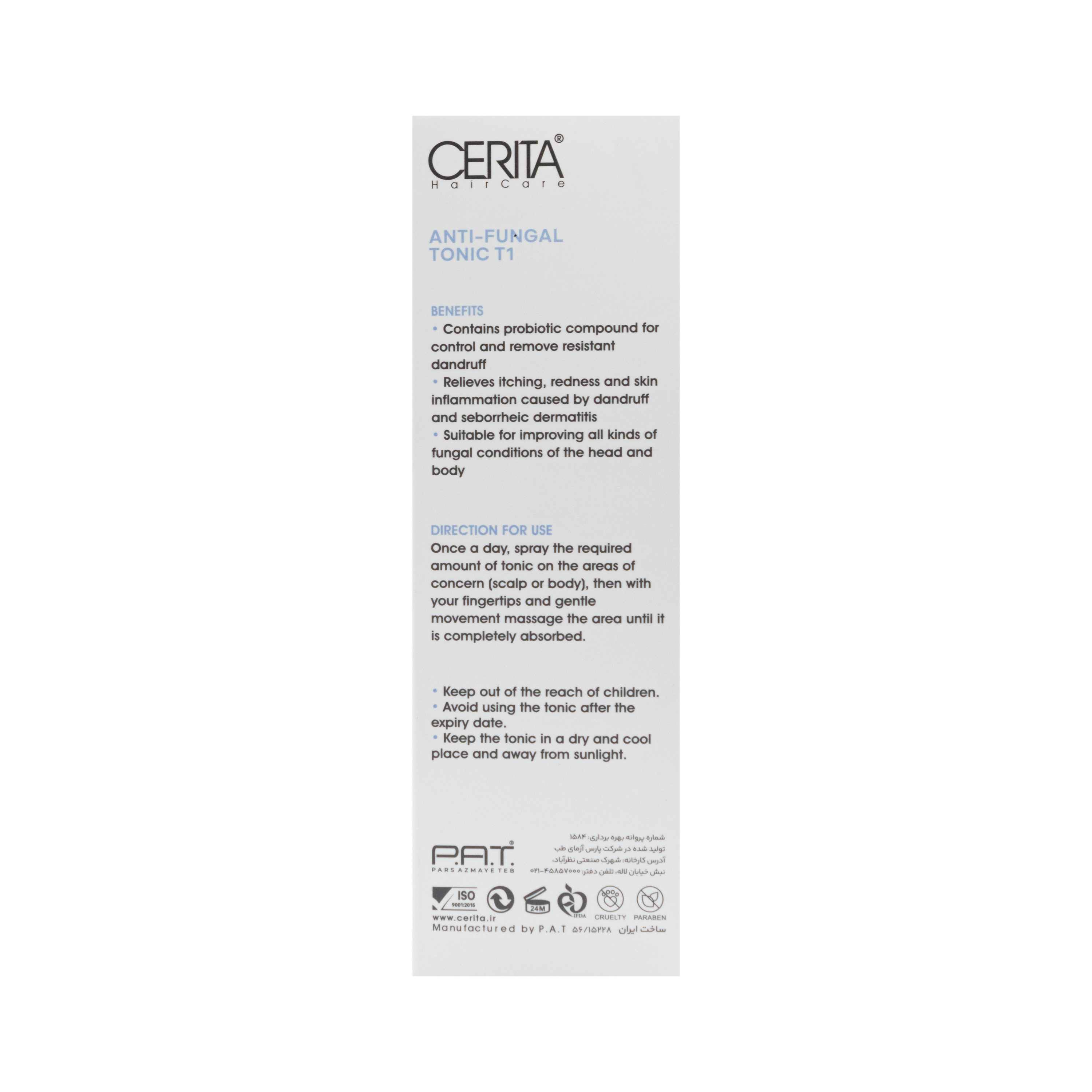 تونیک ضد شوره و ریزش مو T1 سریتا محصولی با کیفیت و بی نظیر است که علاوه بر جلوگیری از رشد و تکثیر قارچ های مولد شوره، سبب بهبود خون رسانی به فولیکول های مو نیز می شود. این محصول ساخت ایران بوده و به دلیل کیفیت بسیار بالایی که دارد قابل مقایسه با محصول های خارجی می باشد.