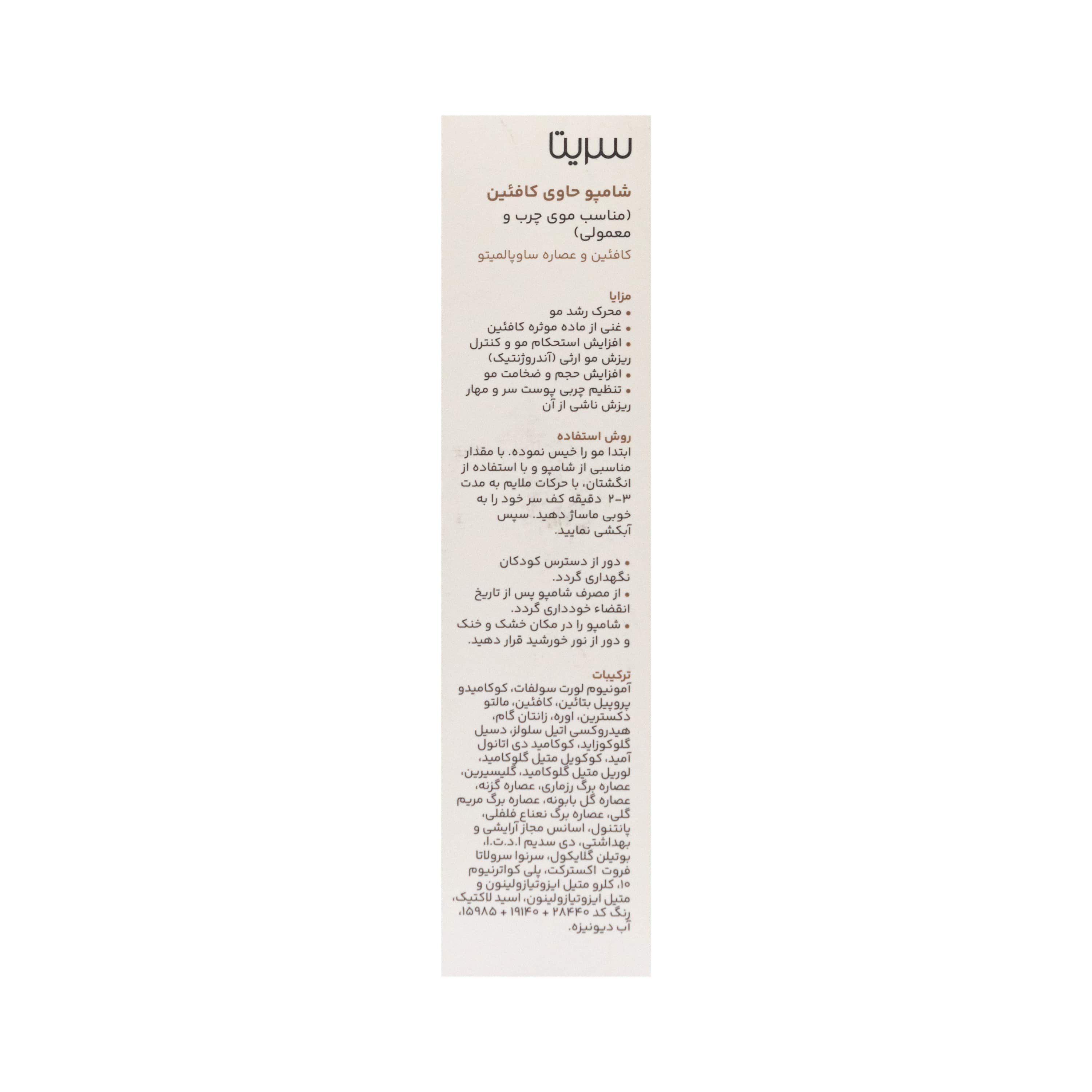 ترکیبات اصلی شامپو کافئین سریتا