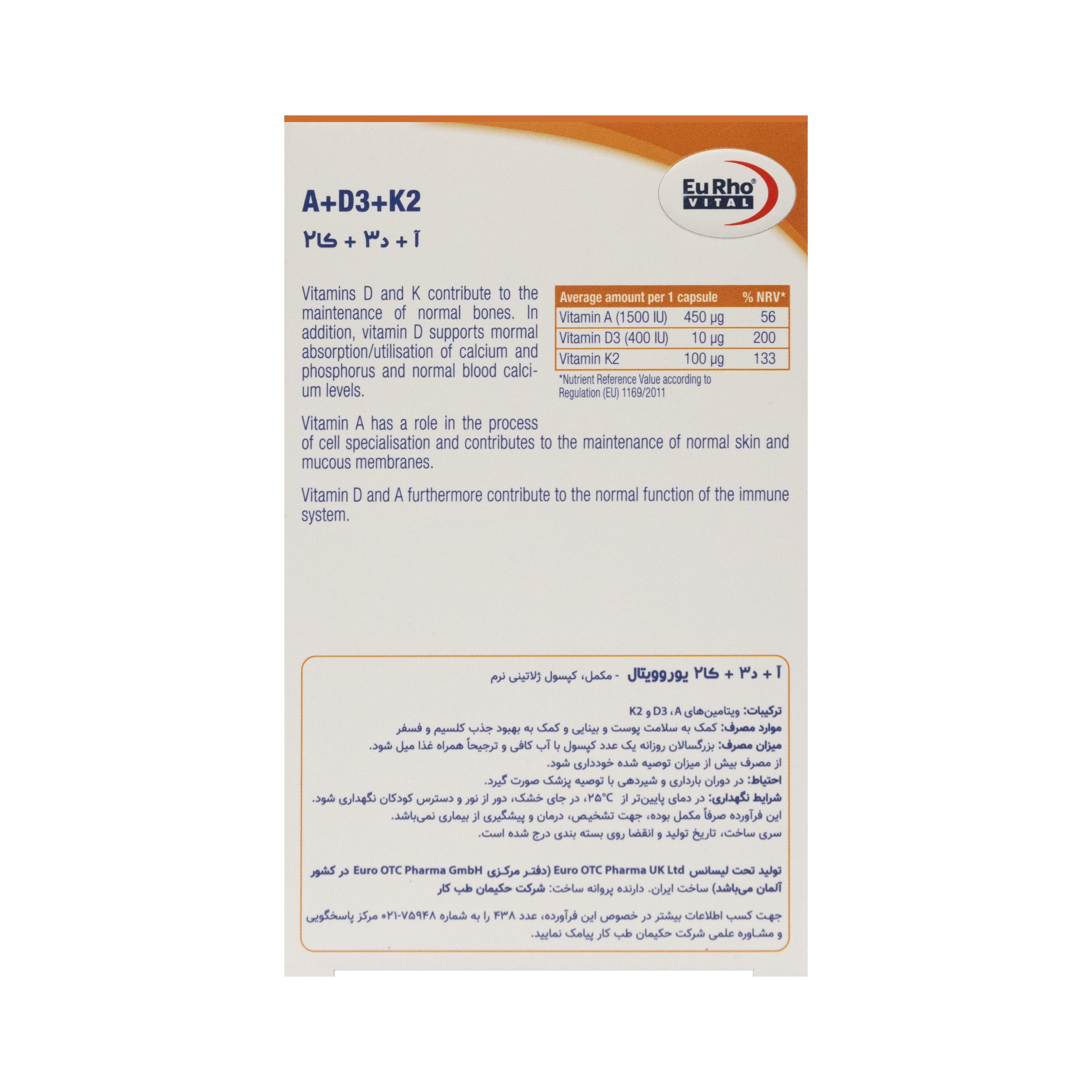 کپسول ویتامین آ و د3 و کا2 یورو ویتال