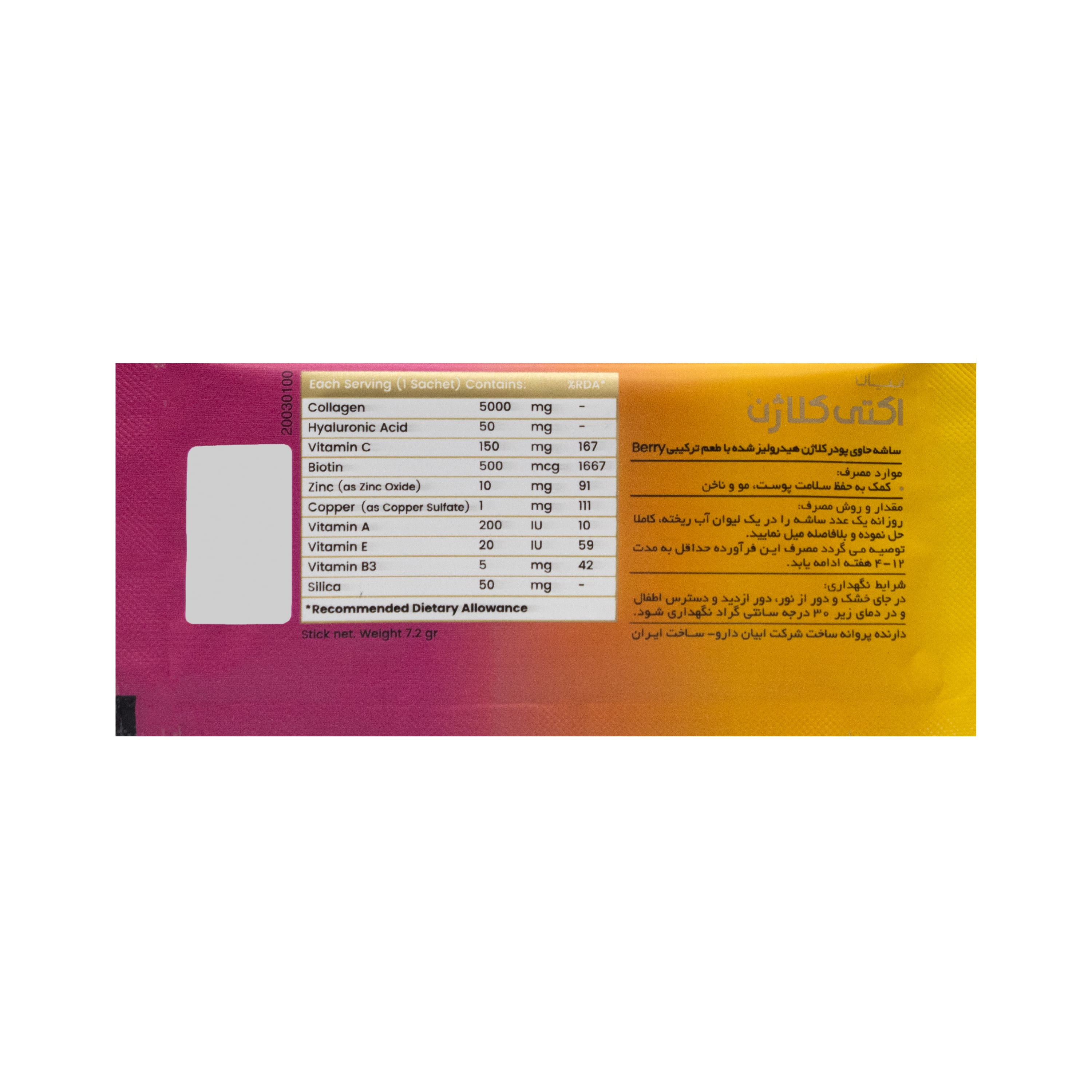 ساشه اکتی کلاژن 5000 طعم توت ابیان دارو
