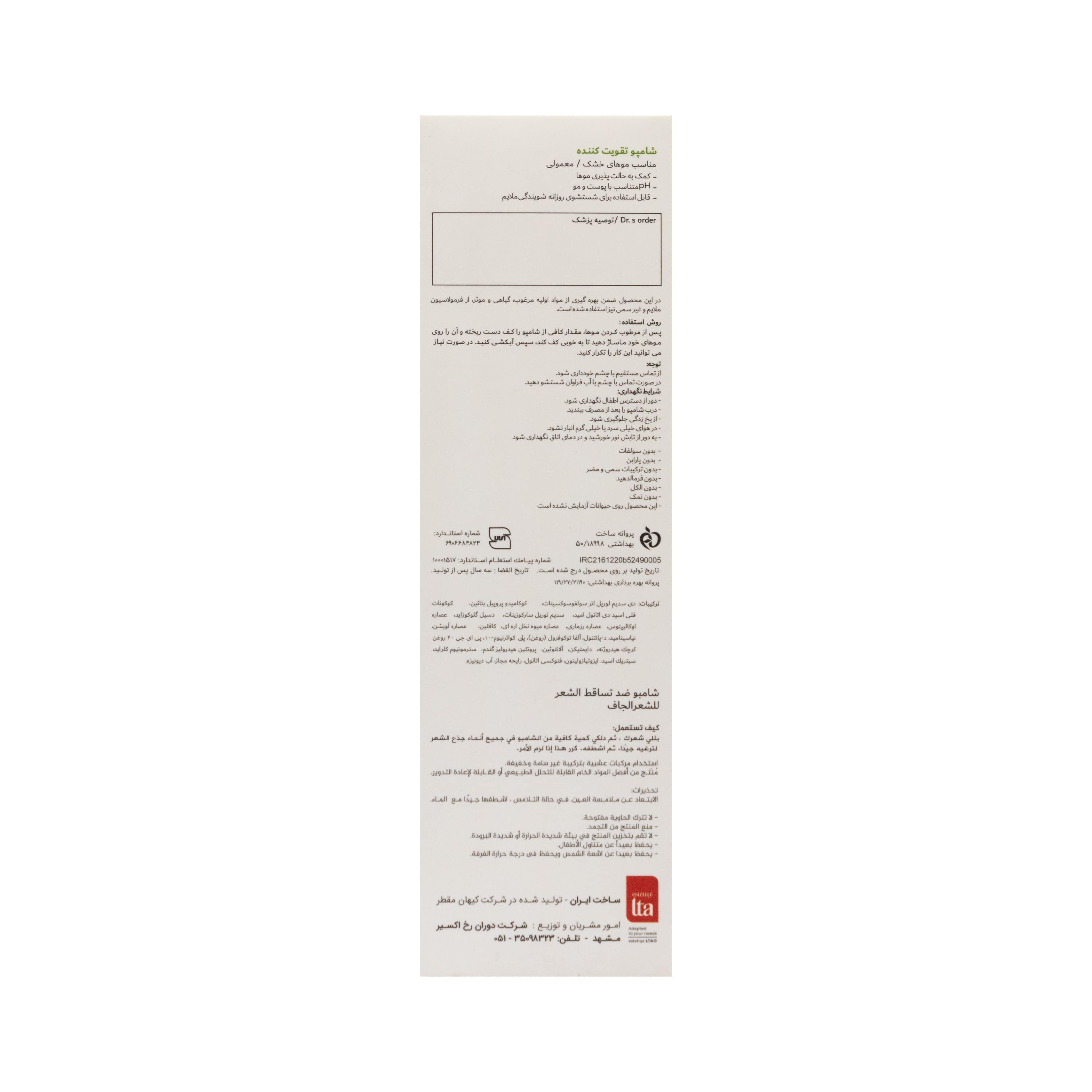 شامپو تقویت کننده D موهای خشک و معمولی استتیک التا