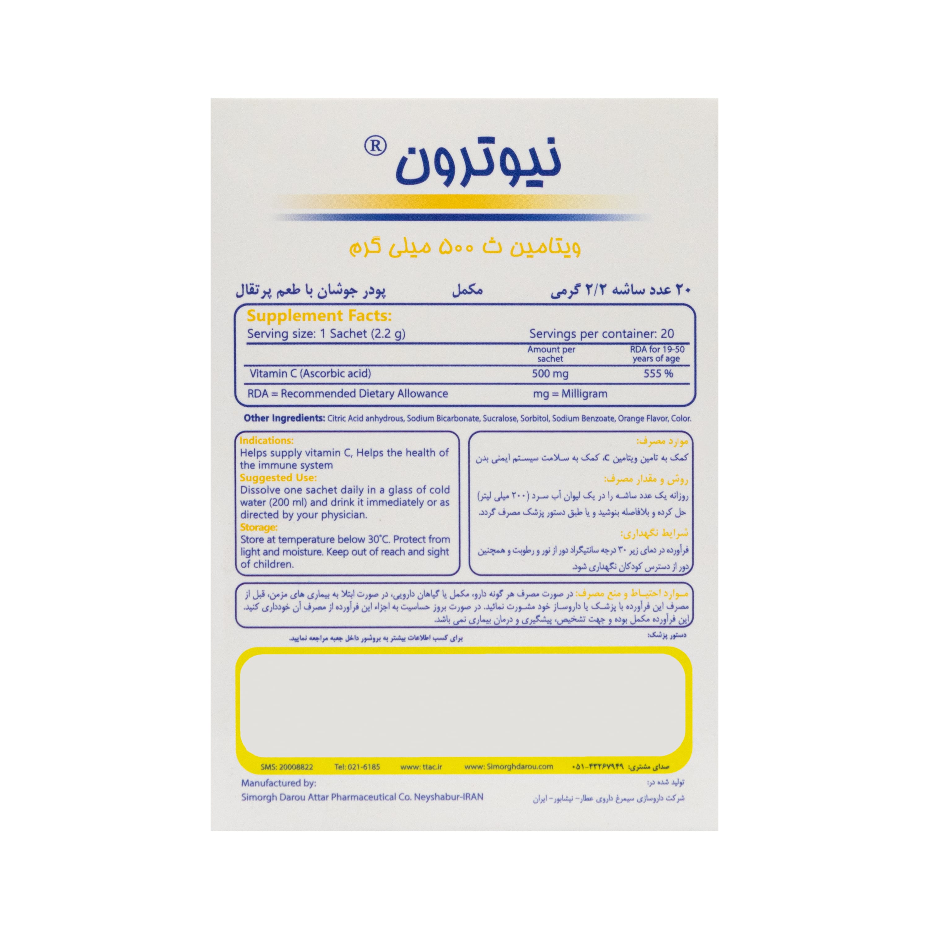 تولید شده در: شرکت داروسازی سیمرغ داروی عطار نیشابور - ایران