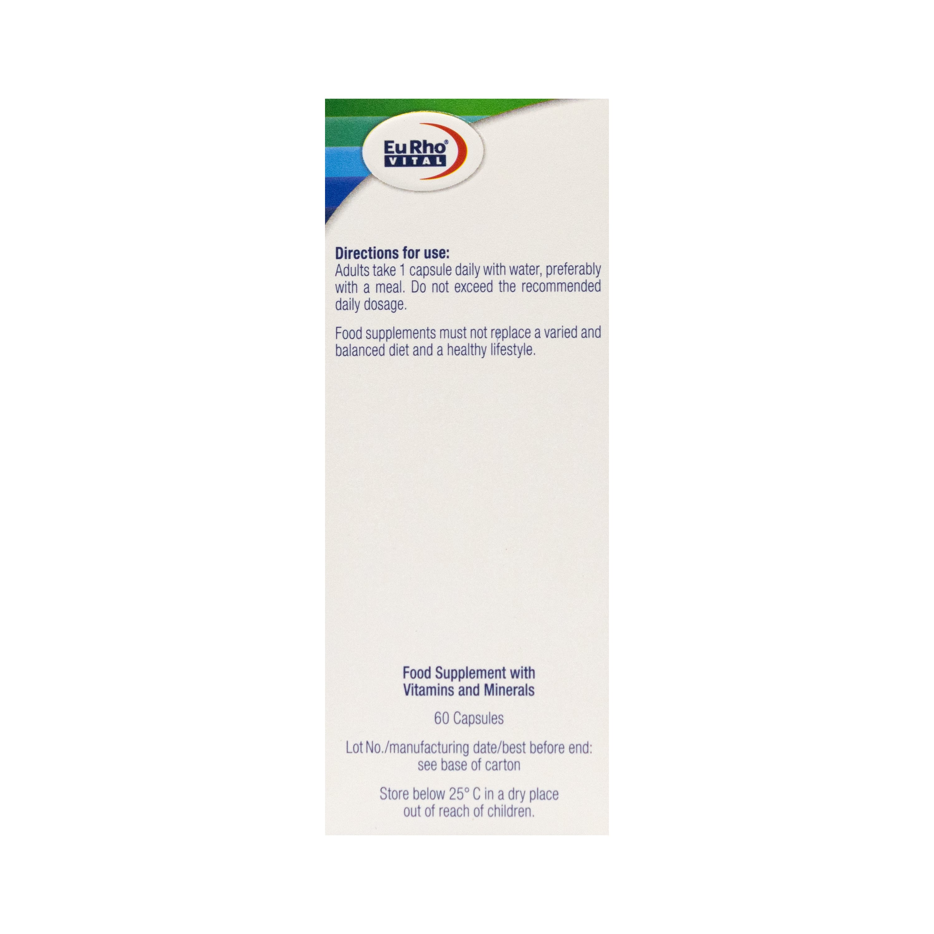 حاوی ویتامین های D3 ،B12 ،B6 ،B5 ،B2 ،B1 ،C ،E، بتاکاروتن، فولیک اسید، نیاسین، بیوتین، آهن، مس، منیزیم، منگنز، کروم، سلنیوم، زینک و مولیبدن