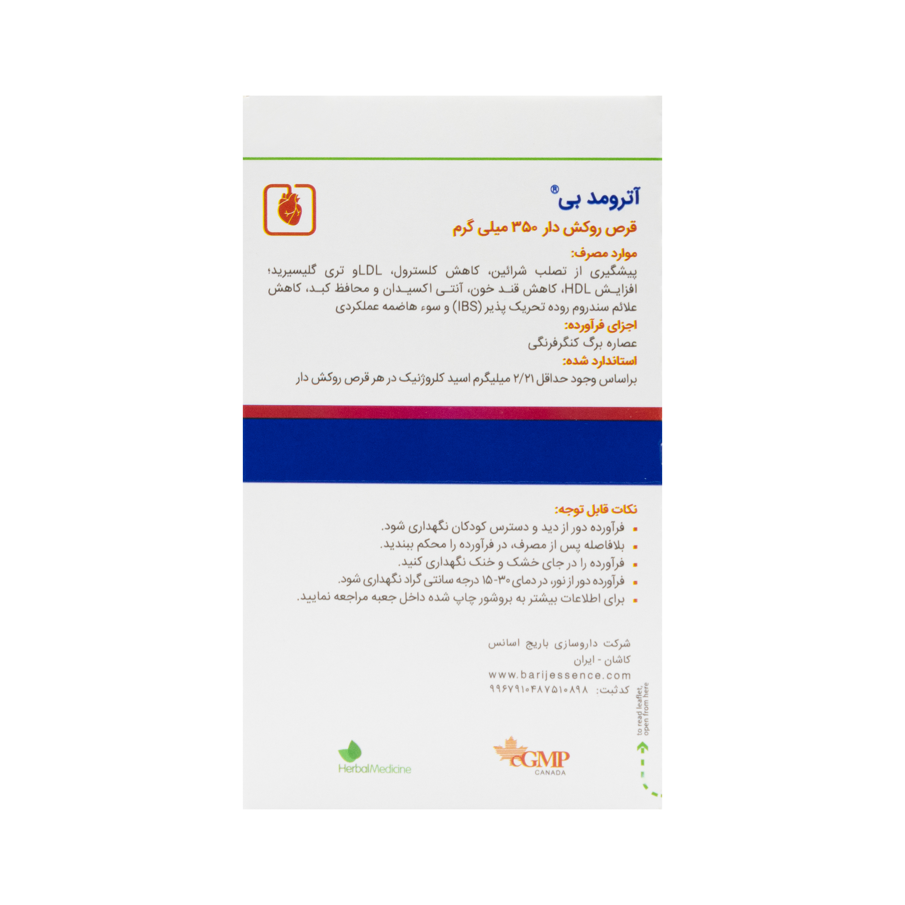 قرص آترومد بی باریج حاوی عصاره برگ کنگر فرنگی است و قابلیت بالایی در محافظت از کبد، افزایش HDL، کاهش کلسترول، LDL و تری گلیسیرید و همچنین پیشگیری از تصلب شرائین دارد. این قرص دارای اثر آنتی اکسیدان فوقالعادهای است.
