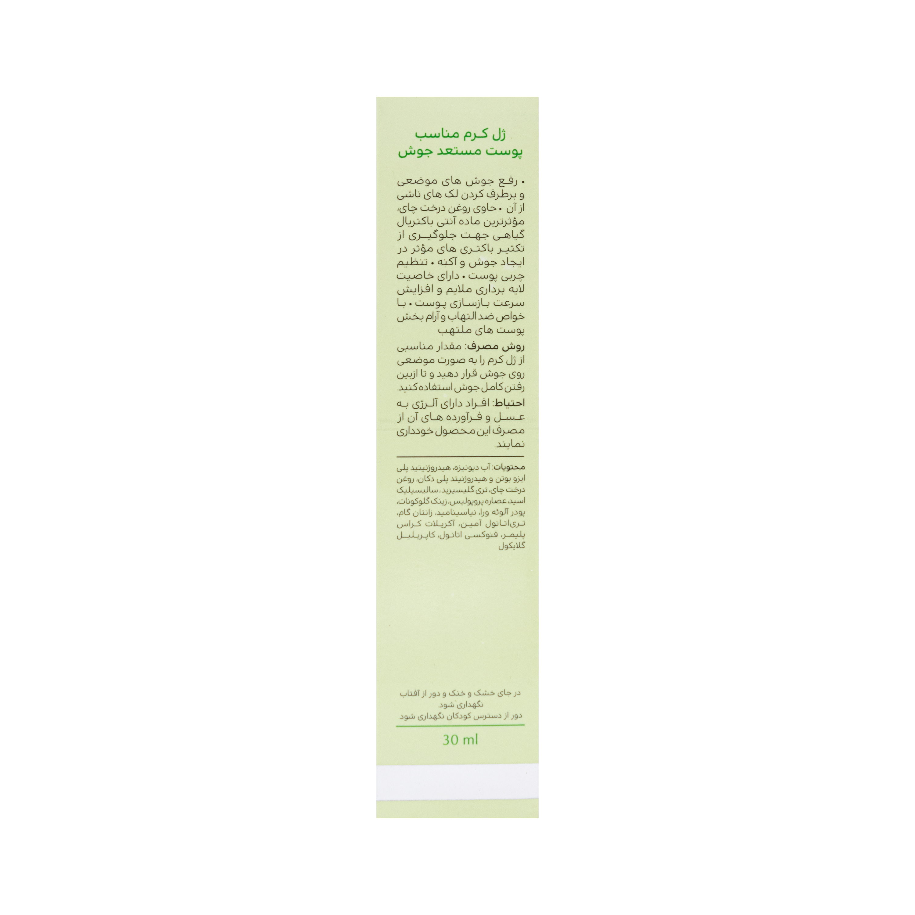 - حاوی روغن درخت چای مؤثرترین ماده آنتی باکتریال گیاهی جهت جلوگیری از تکثیر باکتری های مؤثر در ایجاد جوش و آکنه.
