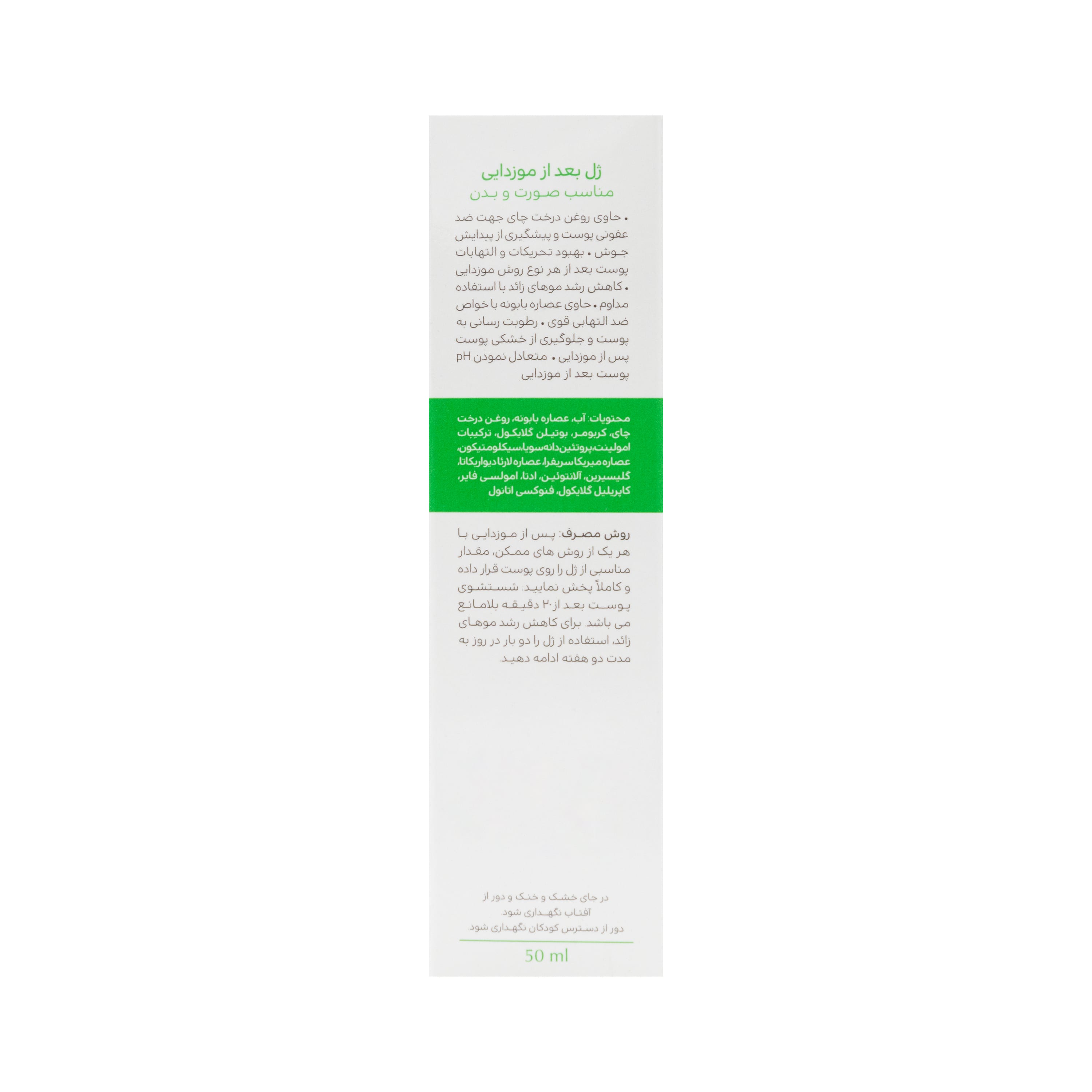 ترکیبات گیاهی موجود در این ژل علاوه بر اینکه با خواص ضد باکتری و ضد قارچی که دارند امکان بروز عفونت و ناراحتی جلدی نظیر آکنه را بعد از موزدایی کاهش می دهند، با ایجاد رطوبت مناسب و بالا بردن خاصیت ارتجاعی از پوست محافظت کرده و به آن شفافیت و صافی می بخشند.